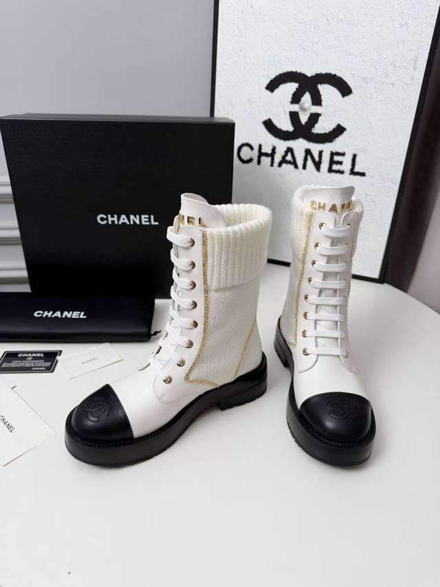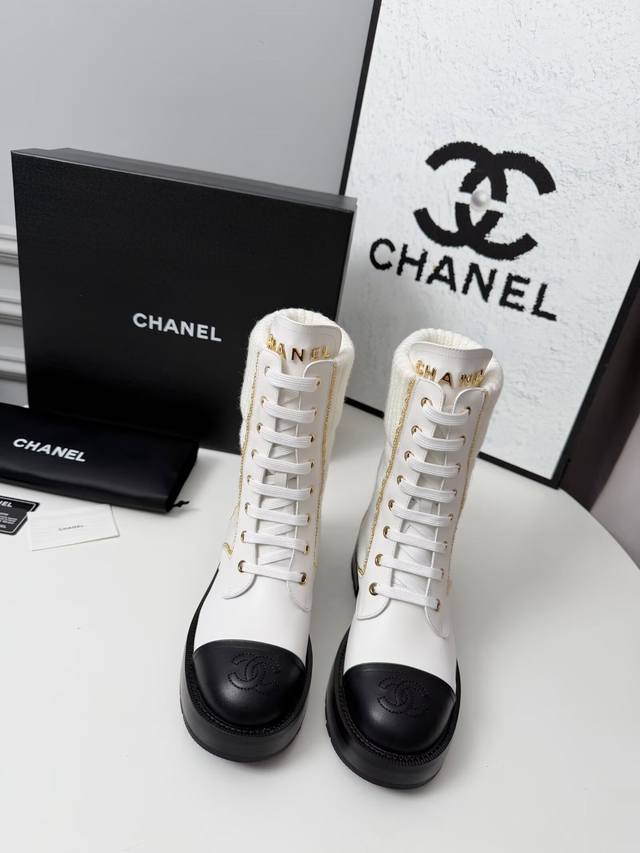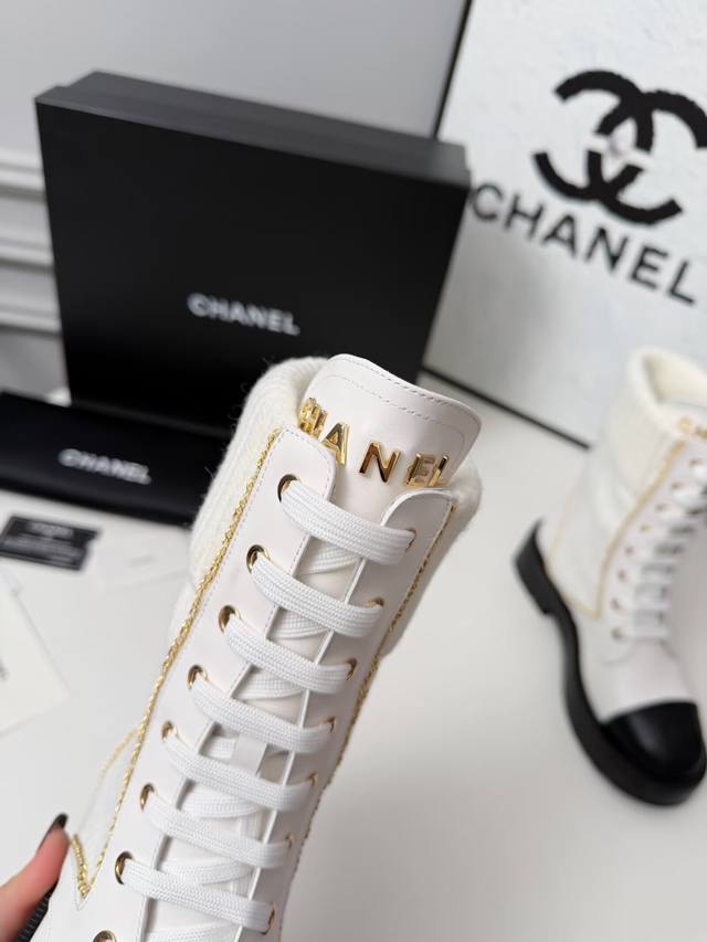 Factory Price (pp): New Autumn/Winter Chanel Ankle Boots, original mold, lace-up design for super easy on and off, embroidered logo on the toe, and metal brand logo on the tongue. Material: Cowhide. Lining: Cowhide. Outsole: Combination sole. Colors: Black, Blue, White (5 options available). Sizes: 35, 42, 41, 42 require custom orders. Packaging: Cloth bag and card.