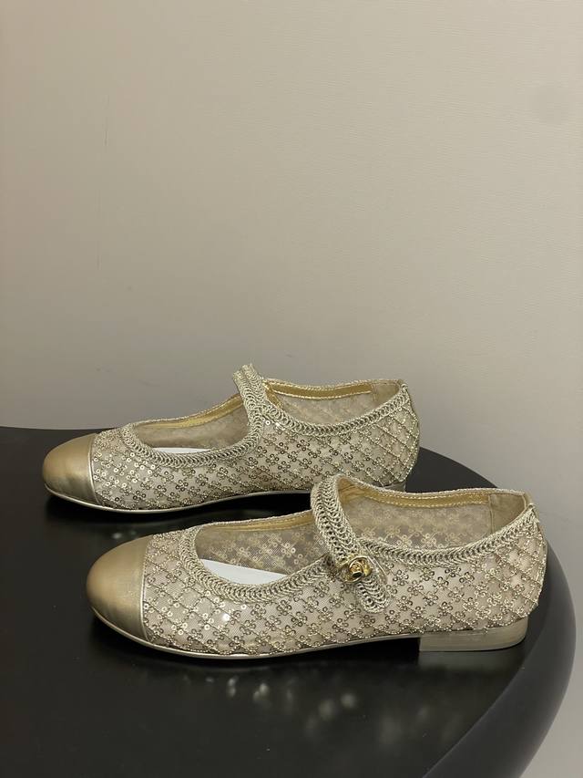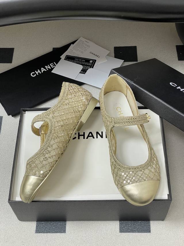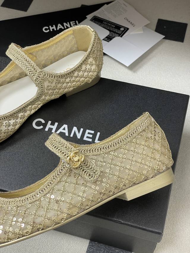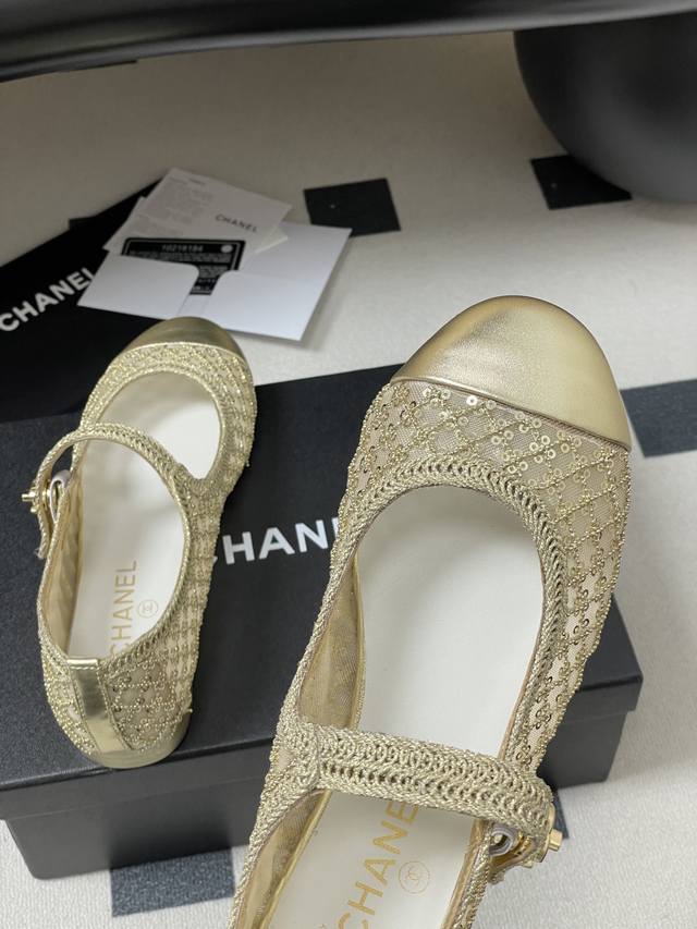 Handmade woven Chanel 25B Spring/Summer New Arrival, Sequined Flat Ballet Flats, Mary Jane Shoes, Mesh Hollow-out Shoes. Classic double C bow, Chanel's high-end feel is always impressive. The style looks simple, but it inexplicably looks sophisticated on the feet. Absolutely youthful, comfortable and easy to wear. Upper: Handmade woven sequins. Insole: Sheepskin. Outsole: Italian genuine leather. Sizes: 35-39, 40-41. Custom orders, no returns or exchanges.