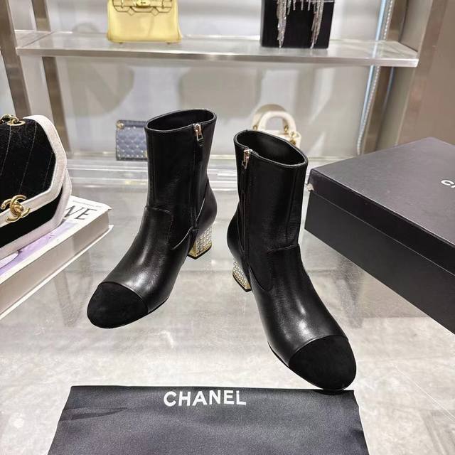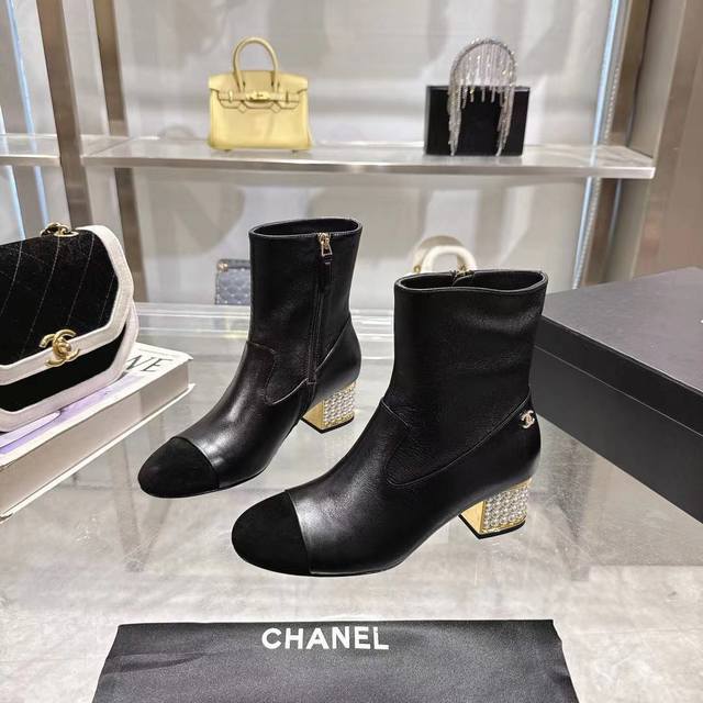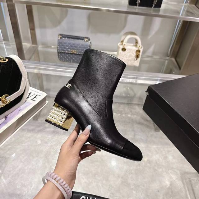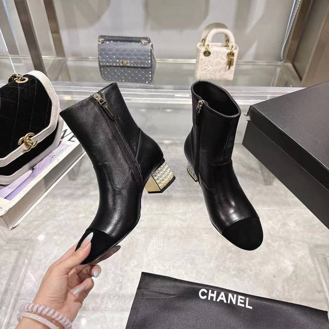 New arrivals on the Chanel official website! Autumn/Winter new ankle boots, classic combination lambskin and suede with pearl heel, 5cm heel height. Sizes 35-42. Sizes 40, 41, and 42 are non-refundable and non-exchangeable.