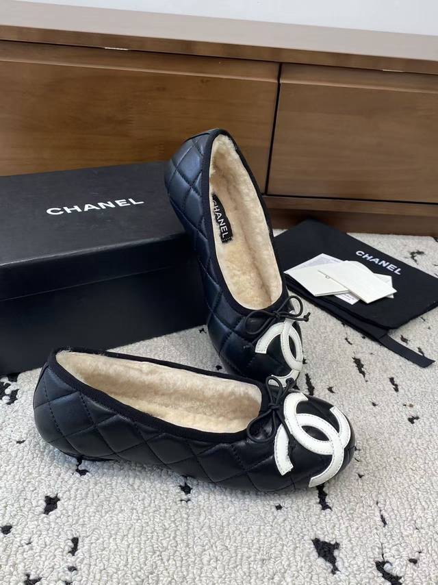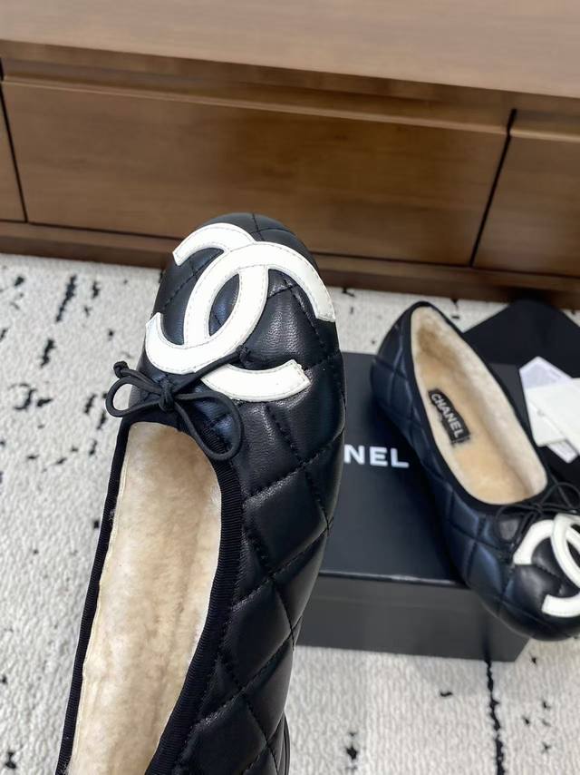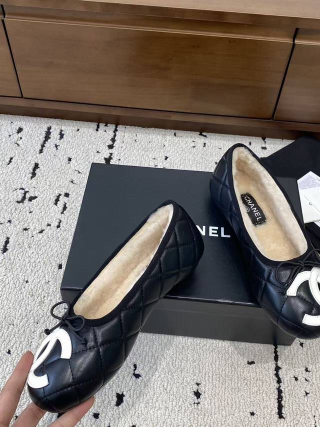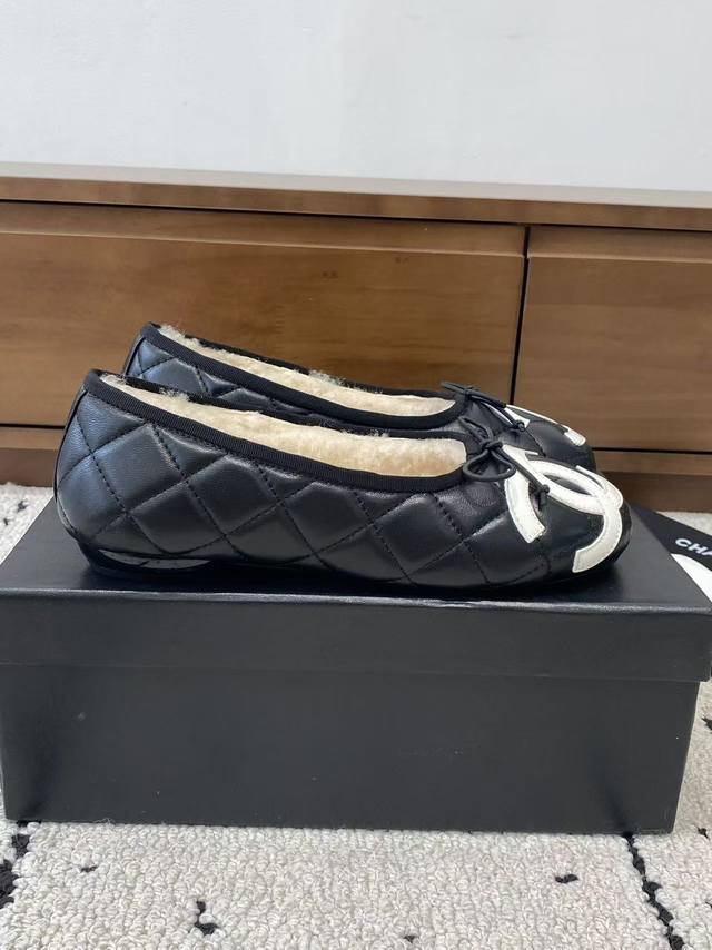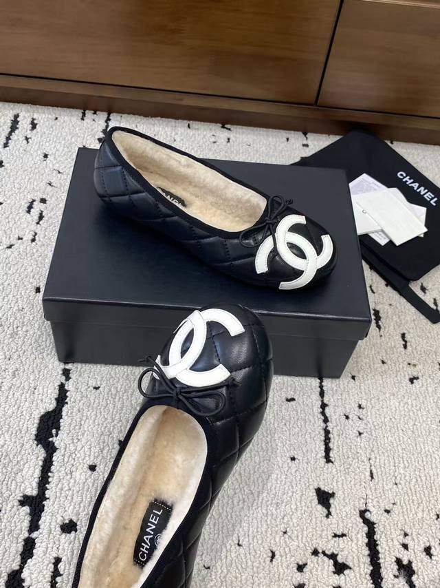 Chanel 2025 new vintage Cambon flats, ballet flats with fur trim, are now available! These are incredibly comfortable!! Made entirely of lambskin and goatskin with a genuine wool lining, they offer unparalleled comfort. The classic two-tone colorway and iconic double logo are eye-catching and chic. Chanel truly knows how to design! They easily complement any outfit, effortlessly exuding elegance. Features include a lambskin lining, Italian genuine leather outsole, sizes 35-39, 40, and 41, and can be made to order.
