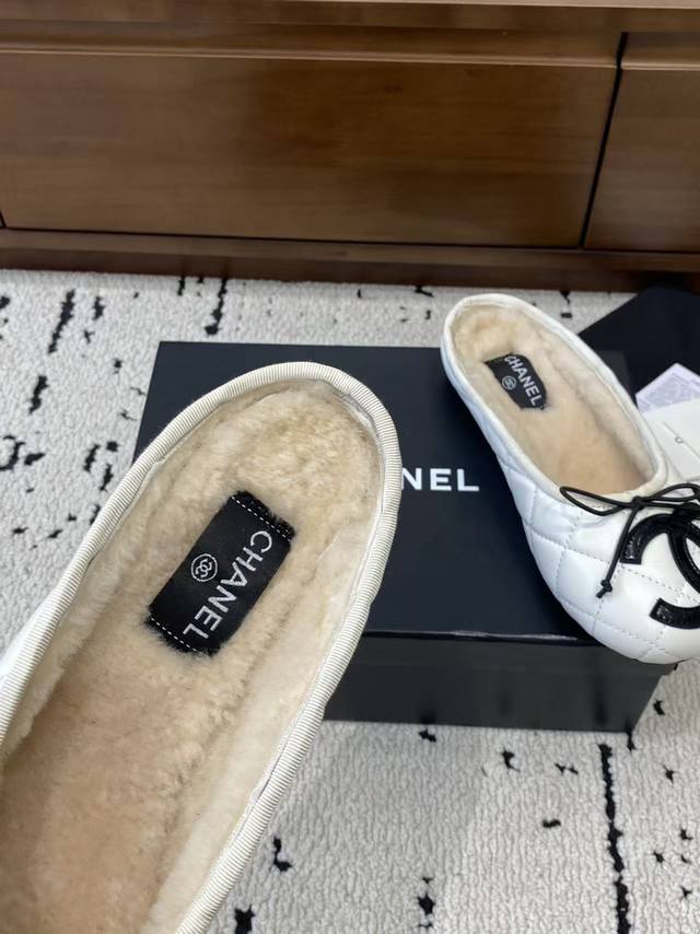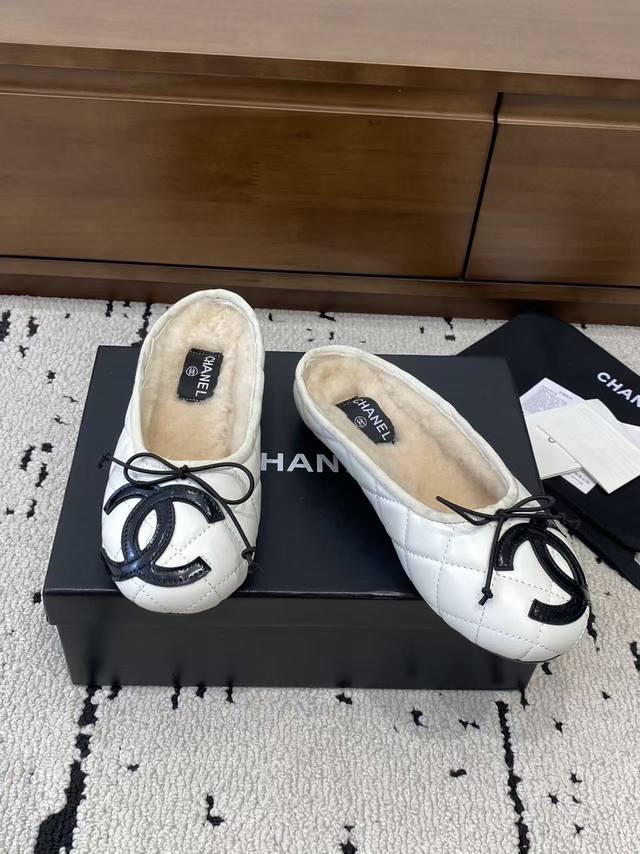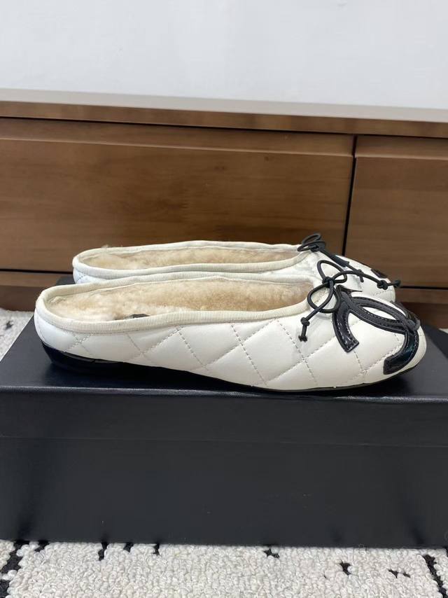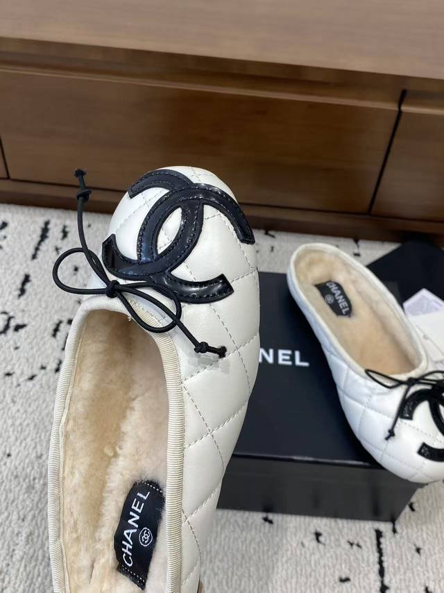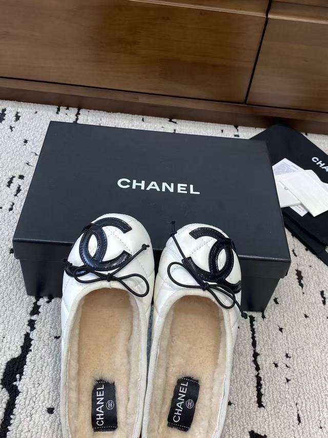 Chanel 2025 New Vintage Cambon Flats, Ballet Flats with Furry Sandals - These are absolutely gorgeous!! Made entirely of lambskin and goatskin with a genuine wool lining, they're incredibly comfortable. The classic two-tone colorway and iconic double logo are eye-catching and chic. Chanel truly knows how to design! They effortlessly complement any outfit, exuding elegance and sophistication. Features include a lambskin lining, Italian genuine leather outsole, sizes 35-39, 40, and 41. Custom orders are welcome.