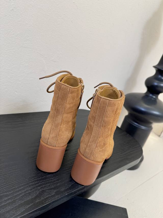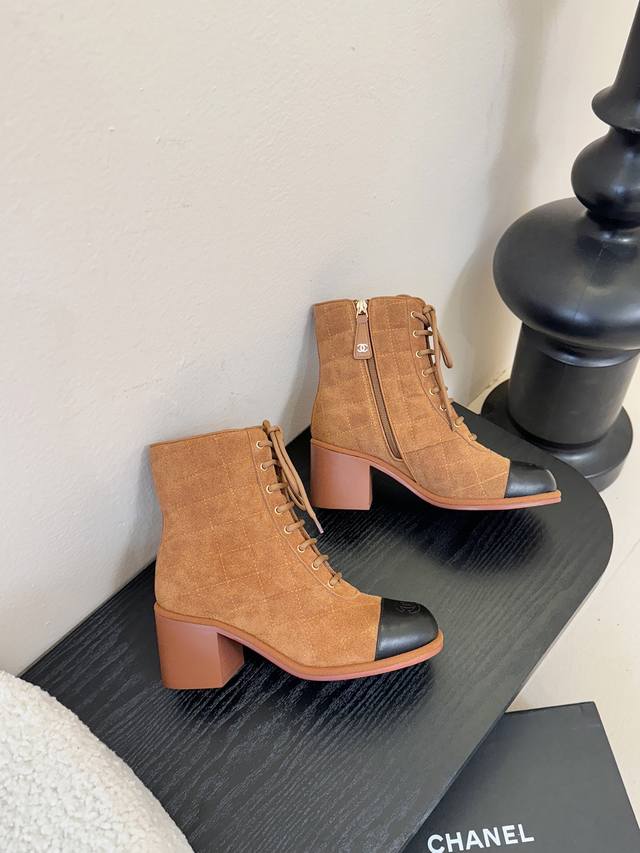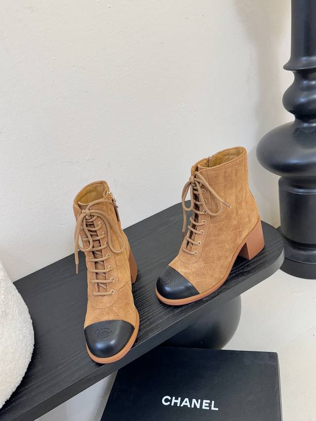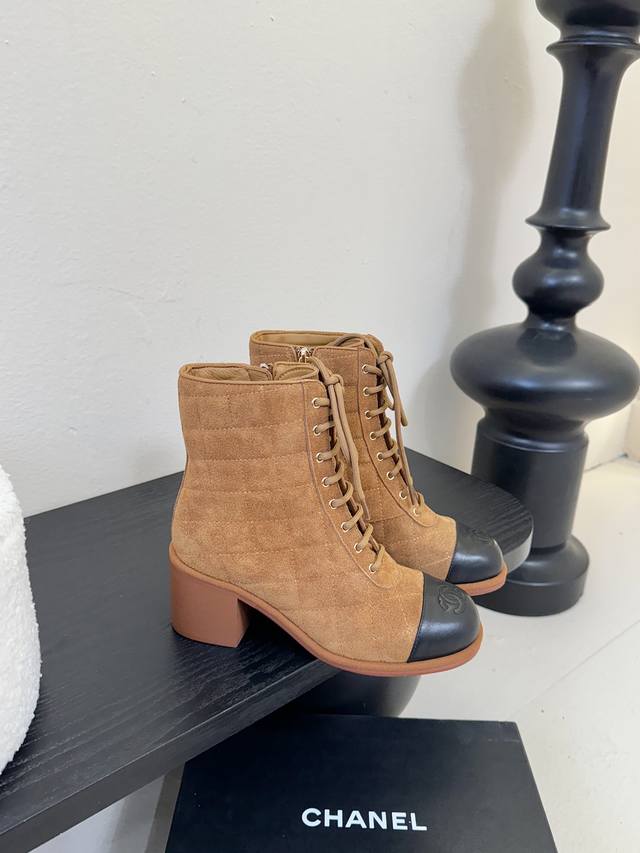 Chanel New Ankle Boots, same style as on the Chanel official website. These new Chanel ankle boots are simple and elegant, fashionable, versatile, and comfortable. Upper: Imported top-grain cowhide; Lining: Sheepskin; Sole: Genuine leather; Heel height: 9cm; Sizes: 35-39; Sizes 40 and 41 are custom-made, non-refundable and non-exchangeable.