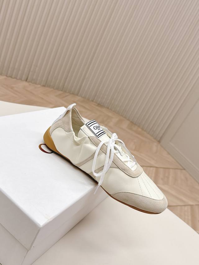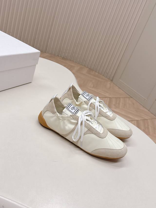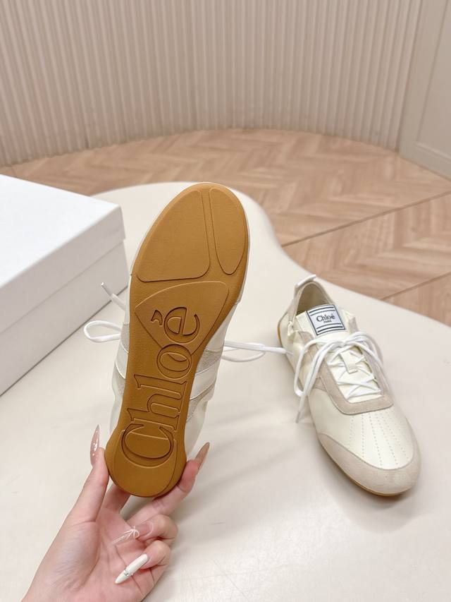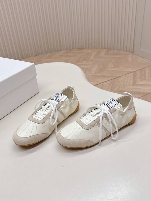 Chloe's new Cortez/German training shoes are now available! These new athletic shoes feature a leather upper with patchwork details, inspired by retro running shoes. Stitching and patchwork techniques give the shoes a new life and aesthetic appeal. The tongue is adorned with the classic brand logo. The shoe shape is fantastic, and they feel great on the foot! Material: Leather patchwork. Original rubber outsole. Sizes: 35-40.