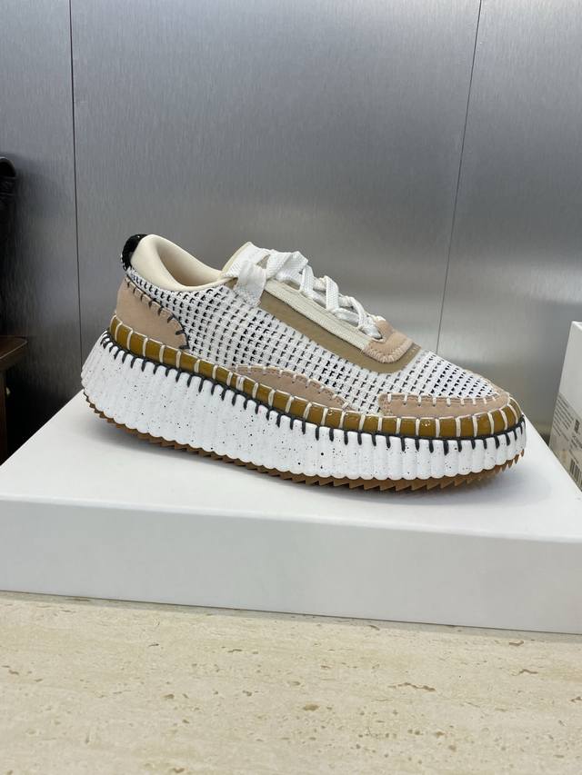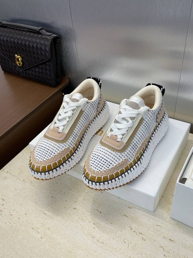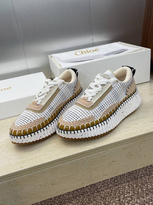 Factory direct price. Chloe 2025 Autumn/Winter runway new sports running shoes, celebrity style, thick-soled lace-up casual fashion color-blocked dad shoes, top-end version on the market. Material: Imported calfskin upper + environmentally friendly breathable mesh lining + water-dyed sheepskin foam insole + original mold TPU outsole. Size: Women's sizes 35-42, 40, 41, 42. Custom sizes are non-refundable.