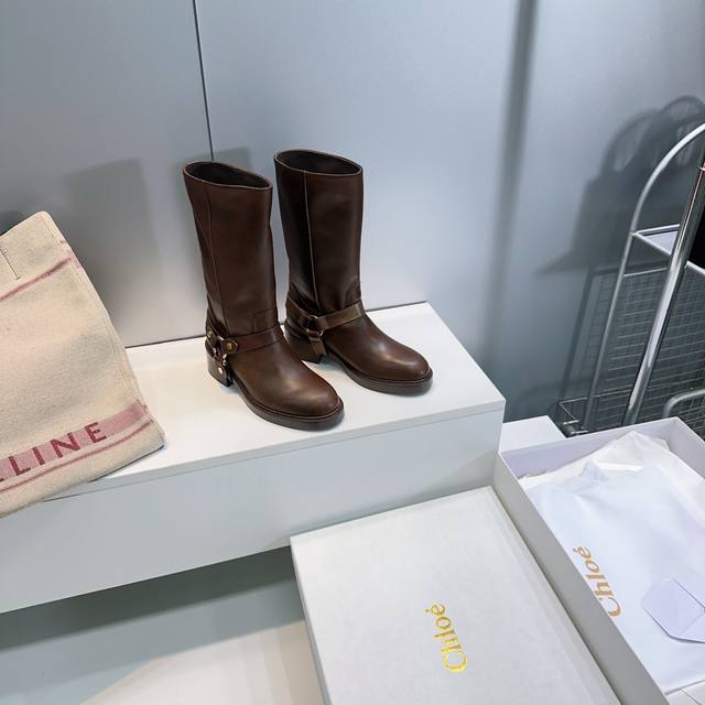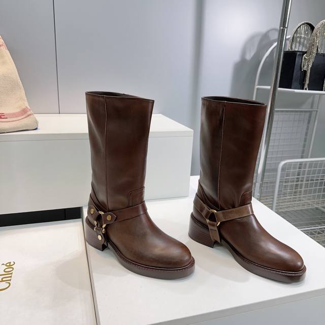 High-quality factory! Top-quality Chloe 2025 Autumn/Winter new retro motorcycle boots, slip-on chunky heel round toe mid-length boots/ankle boots! These boots are absolutely gorgeous! Retro and slimming, they're simply stunning! 100% head-turning rate, everyone looks good in them, and they're effortlessly beautiful with any outfit! Original hardware purchased domestically, all molded and copper-plated, with the same texture and material as the original! We used Italian cowhide raw material and artificially applied a retro rubbing, making the color and weight of the boots identical to those in the boutique! The boot shaft lining uses a single piece of cowhide; we refuse to use patchwork leather, striving for high-end customization and indistinguishability from the original! Original TPU mold sole!! The upper is made of distressed top-grain calfskin, the insole is made of water-dyed cowhide, and the outsole is made of thickened genuine Italian leather with rubber injection molding. Heel height: approximately 4.5cm. Sizes: 35-40. Size 40 is custom-made and non-refundable. Comes with original packaging.
