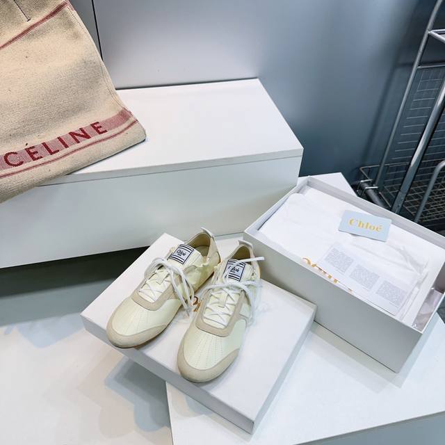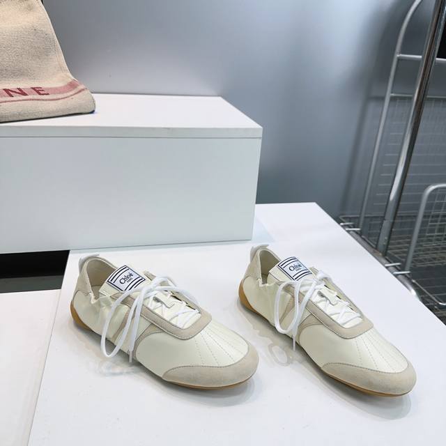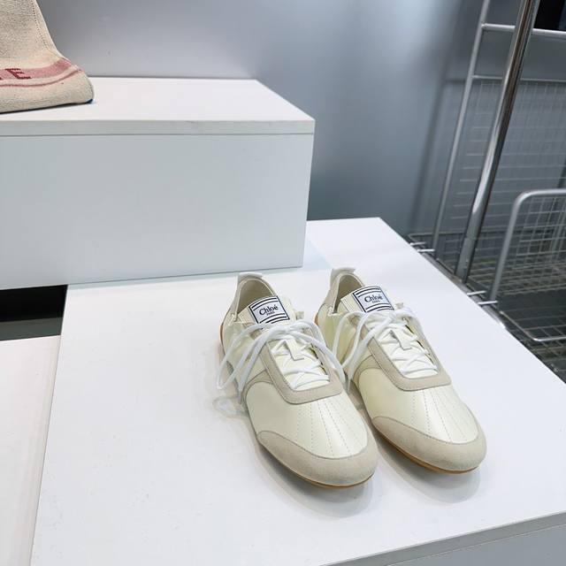 High-quality factory! Top-quality Chloe Spring/Summer 2026 new German training shoes, casual sneakers! A popular online sensation, this top-tier casual vacation style is sought after by top influencers and has been consistently sold out. An indispensable item for spring and summer! Extremely attractive and stylish on the feet, showcasing your elegance, lightness, and slimming effect! Upper made of calfskin and suede, inner lining and insole made of sheepskin, original molded rubber outsole, ultra-lightweight. Sizes: 35-40. Size 40 is custom-made and non-refundable. Comes with original packaging.