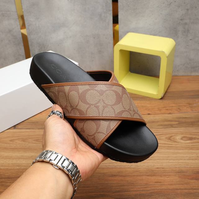 A high-quality Coach replica, the highest-end Coach on the market. Welcome to compare! High-end 1:1 mold customization, original upgraded outsole, lighter and more slip-resistant. Top-quality on the market, endorsed by numerous celebrities, fashionable and trendy, a versatile bestseller, simple yet tasteful, a must-have for trendsetters, exuding a stylish and casual vibe. Fashion is on your feet, full of confidence. Same packaging as in department stores. Summer slipper season is here! Available in two colors, sizes 38-46.