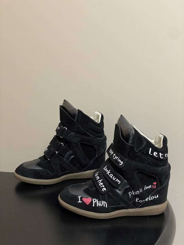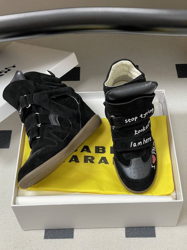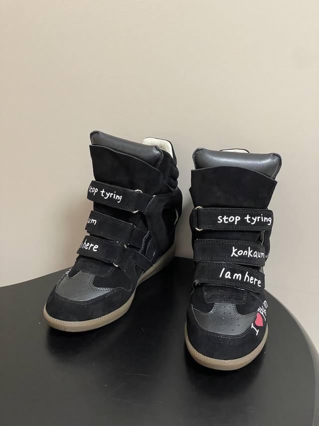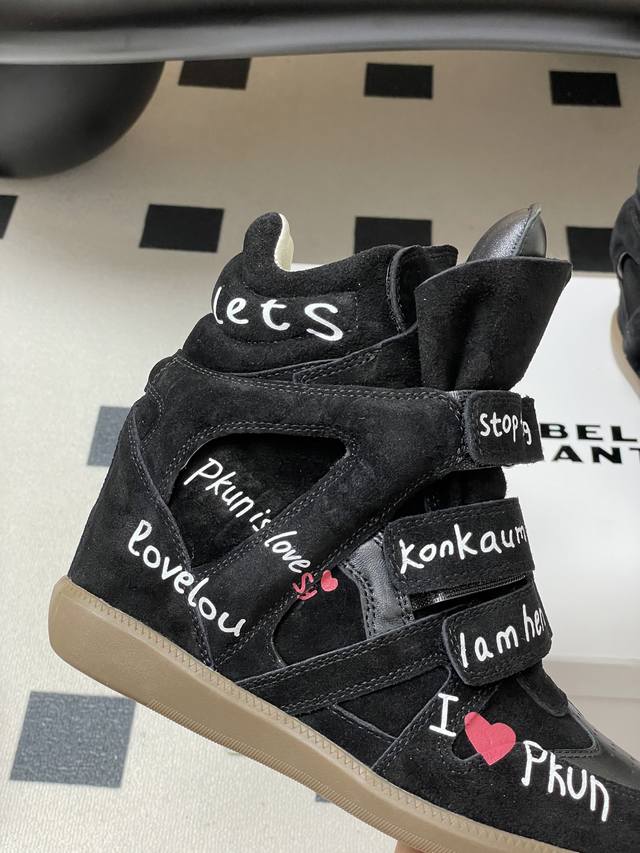 Graffiti Style DDD Isabel Marant 2025 Fall/Winter New Velcro Casual High-Top Shoes Thick-Soled Ankle Boots DDD Hot Recommended by Influencer Bloggers on Instagram! A pair of simple yet sophisticated boots... 1:1 replica of the original with hidden stitching on the sole! Exceptionally comfortable and versatile! Super suitable for street style photos, easy to wear. Isabel Marant first launched its famous Bekett wedge sneaker in 2011. Marant quickly rose to fame with this shoe and collaborated with brands such as Converse and H&M. DDD Upper: Cowhide suede DDD Insole: Sheepskin DDD Outsole: Molded rubber outsole DDD Sizes: 35-39 40.41 Custom-made, no returns or exchanges DDD