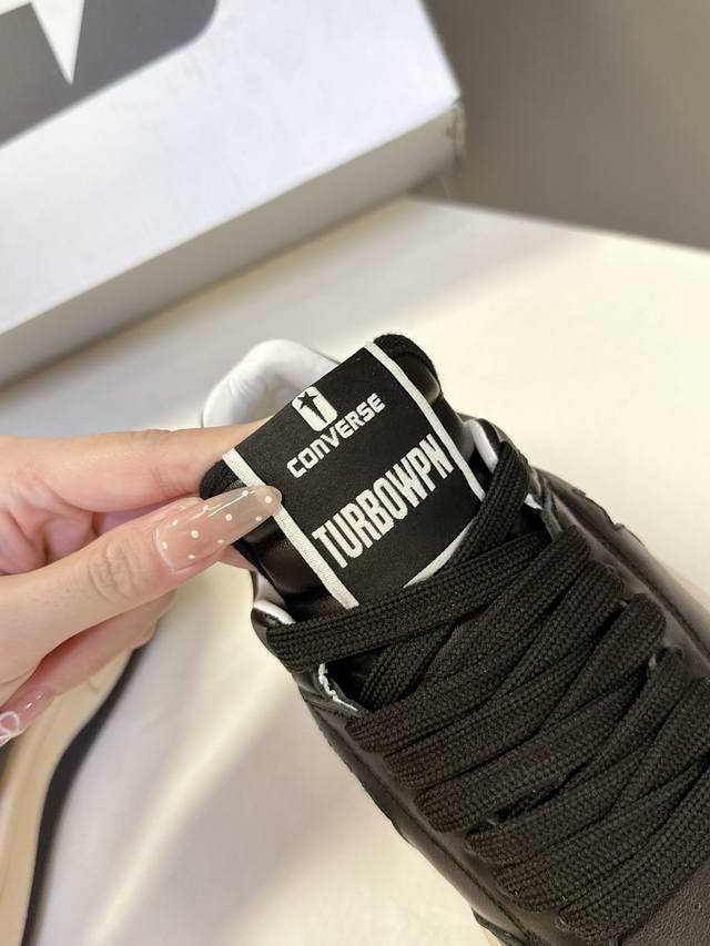 Rick Owens x Converse collaboration sneakers. Highly recommended by celebrities and fashion bloggers. The combination of these two brands creates a new spark. Every detail showcases the brand's DNA. The 3D inflatable upper reshapes the silhouette of Converse basketball shoes. The iconic elongated tongue and exaggerated proportions of the inflated midsole intertwine the legendary style of Bweapon with the dark texture of Ro. The platform sole is a true height-enhancing tool. The upper is made of lychee-textured cowhide, using the original mold. Sizes: Women's 35-40, Men's 39-44.