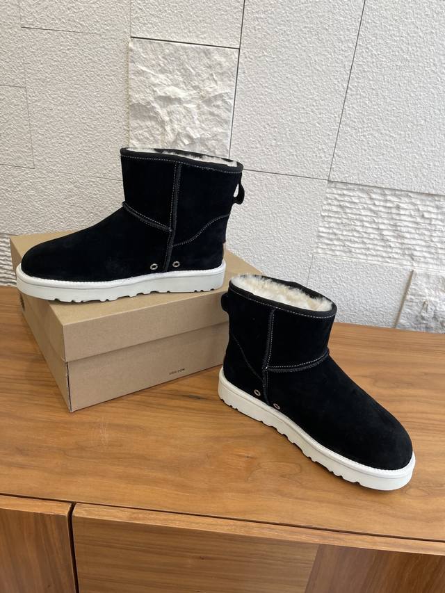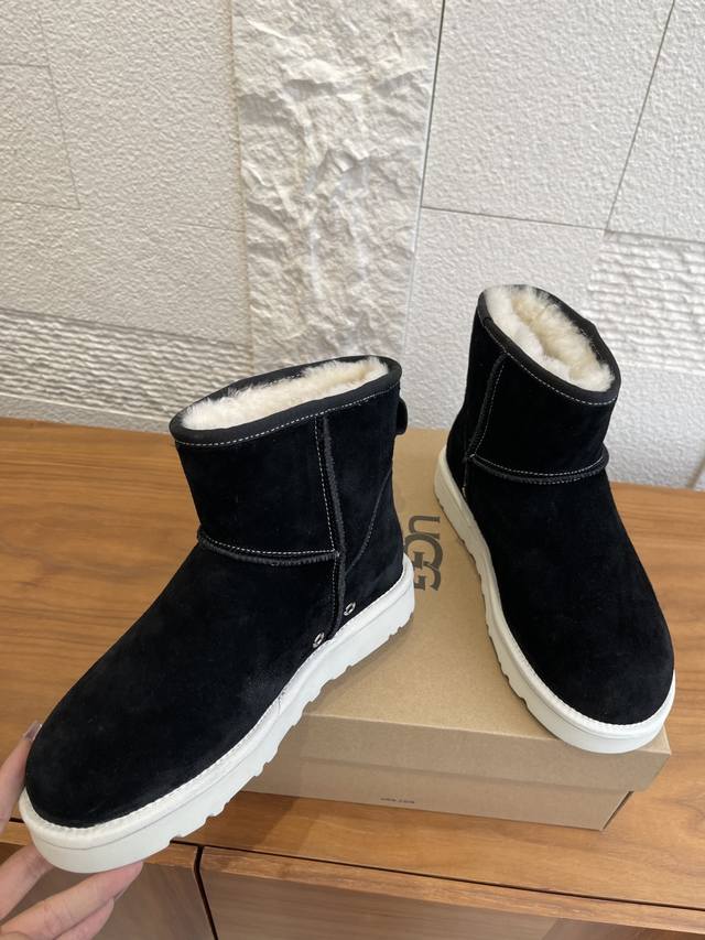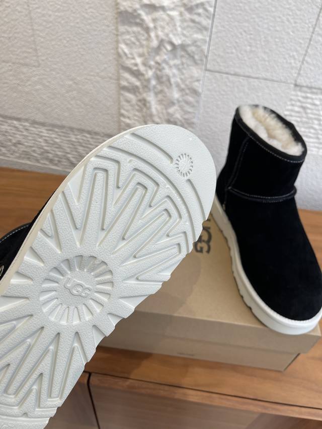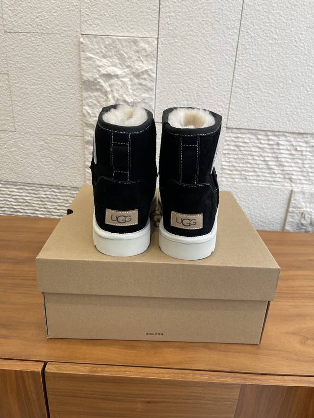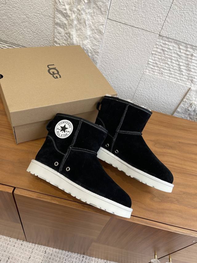 Top Version: DDD Ugg X Converse 2025 Fall/Winter Collaboration Snow Boots. These Ugg and Converse collaboration snow boots feature black leather and a plush lining for maximum warmth! They include the classic star logo on the side, and a durable, slip-resistant rubber outsole, making them perfect for fall and winter wear. The mid-calf design is stylish and practical, offering comfortable wear and a trendy look, suitable for everyday casual wear or outdoor activities. A must-have for young people! Material: Imported cow suede; Lining: Imported wool; Outsole: Original molded Eva outsole; Size: 35-40 (40 sizes are custom-made and non-refundable).
