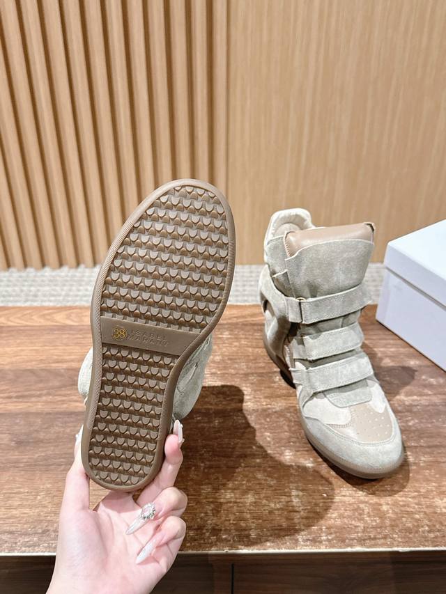 Top-tier version DDD Isabel Marant classic high-top sneakers DDD Hot recommendation from Instagram influencers! A pair of simple yet sophisticated boots... 1:1 replica of the original with hidden stitching on the sole! Exceptionally comfortable and versatile! Super suitable for street style photos, easy to wear. Isabel Marant first launched the brand's famous Bekett wedge sneaker in 2011. Marant quickly rose to fame with this shoe and collaborated with brands such as Converse and H&M. DDD Upper: Cowhide suede DDD Lining: Sheepskin DDD Outsole: Rubber outsole DDD Size: 35-41 40 41 Custom orders are non-refundable DDD