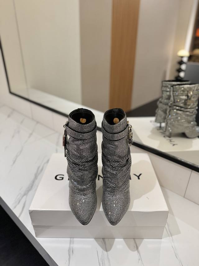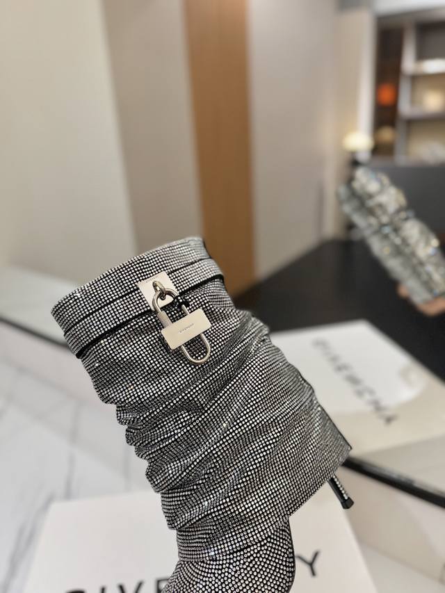 Authentic Counter-Grade Custom Version DDD Givenchy Shark Lock Series Padlock Ankle Boots with Over 40,000 Rhinestones, New Style, Highest Quality Version on the Market DDD Givenchy's Lock Buckle is a Fashion Sensation, Instantly Creates Longer Legs DDD Original Design, Super Authentic Shoe Shape, Highest Reproduction of Shoe Shape DDD Excellent Fit, Slimming and High-End, Super Comfortable DDD Upper: Imported Ultra-Fleece, Cold-Resistant, Flex-Resistant, Scratch-Resistant, Rhinestones Won't Fall Off DDD Lining: Calfskin DDD Custom-Made Private Mold with Iconic Logo Lock DDD Lock Available in Pure Silver, Pure Gold, and Gold and Silver Mixed Colors, Please Specify in Order Notes DDD Heel: 10.5cm Heel Height, True to the Private Mold DDD Outsole: Imported Genuine Leather Outsole DDD Sizes: 35-40 34.40 41:42 Customizable, No Returns or Exchanges DDD