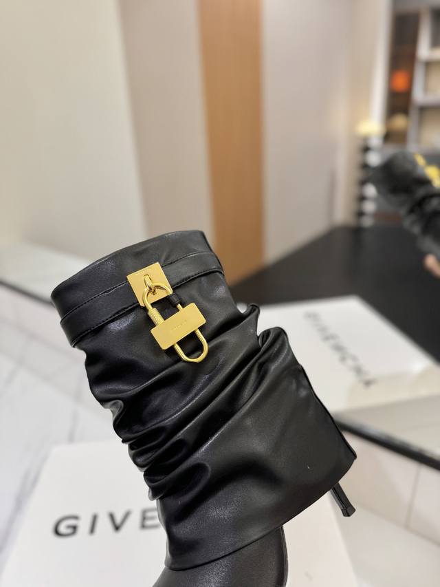 Authentic Counter-Grade Custom Version DDD Givenchy Shark Lock Series Padlock Ankle Boots, New Style, Highest Quality Version on the Market DDD Givenchy buckle is sweeping the fashion world, instantly giving you longer legs DDD Original shoe design, super accurate, highest reproduction DDD Excellent fit, slimming and high-end look, super comfortable DDD Upper: Imported cowhide DDD Lining: Calfskin DDD Custom-made matching mold with iconic logo buckle DDD Buckle available in pure silver, pure gold, and gold and silver mix, please specify in the order notes DDD Heel: Matching mold, 10.5cm heel height DDD Outsole: Imported genuine leather outsole DDD Sizes: 35-40 34.40 41:42 Customizable, non-refundable DDD