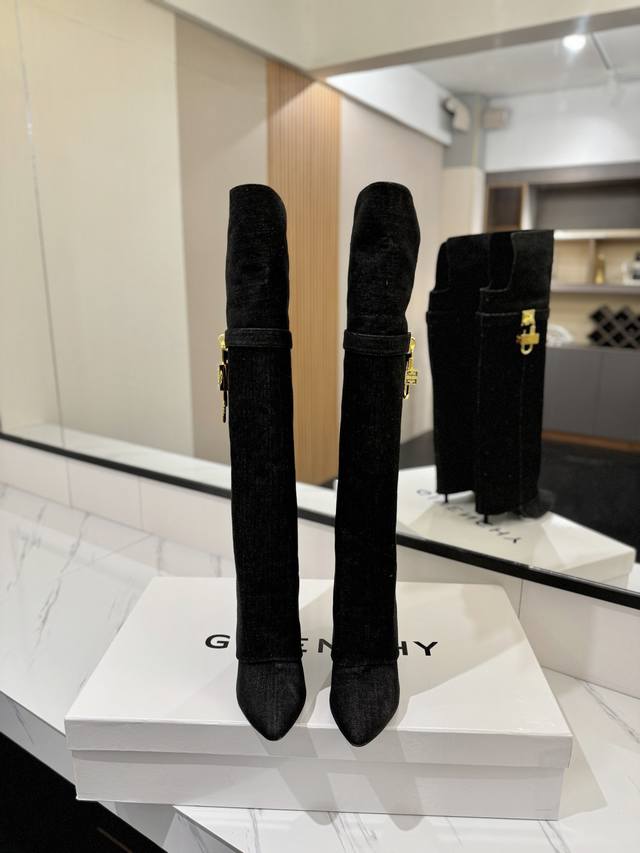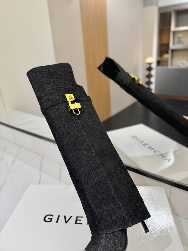 Authentic Counter-Grade Custom Version DDD Givenchy Shark Lock Series Padlock Over-the-Knee Boots, New Arrival, Highest Quality Version on the Market DDD Givenchy's iconic padlock buckle is a fashion sensation, instantly giving you longer legs DDD Original design, super accurate and highly replicated DDD Excellent fit, slimming and sophisticated look, super comfortable DDD Upper: Washed Denim DDD Lining: Calfskin DDD Custom-made matching mold with iconic logo buckle DDD Buckle available in pure silver, pure gold, and gold and silver mix; please specify your preference when ordering DDD Heel: Matching mold, 10.5cm heel height DDD Outsole: Imported genuine leather outsole DDD Sizes: 35-40 34.40 41:42 Customizable, non-refundable DDD