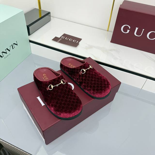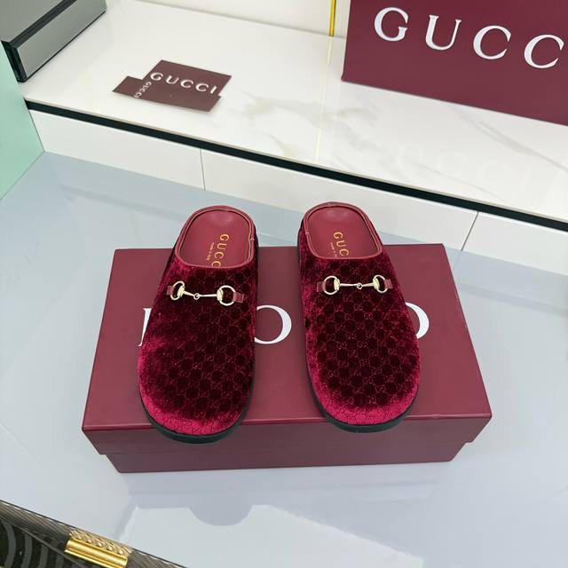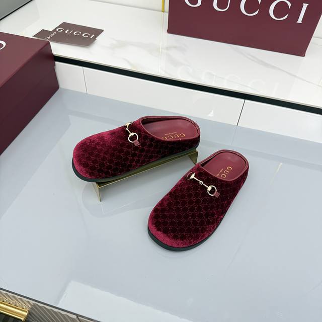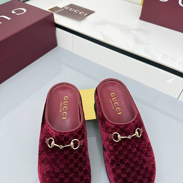 Autumn/Winter New Suede Cowhide Horsebit Wool Slip-On Women's Slip-On Gg The Gg collection continues to use archival symbols in its 2025 Autumn/Winter collection. Horsebit hardware, reminiscent of the brand's equestrian heritage, appears on these Camel and high-frequency embossed Gg mules. DDD Brown suede Gg embossed DDD Horsebit trim DDD Gold-tone hardware DDD Wool lining DDD Round toe DDD Rubber sole DDD Flat sole DDD Made in Italy DDD Sizes: 36-42 DDD