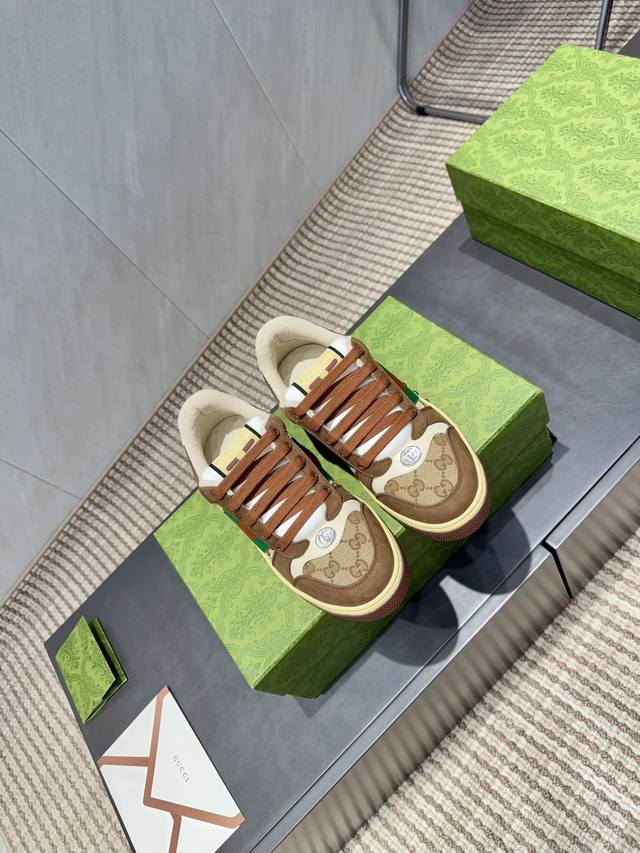 Factory Direct: Exclusive Top-Tier Version for Couples DDD Couple Color Block Dirty Sneakers DDD Gucci Dirty Sneakers Full Series Upgrade Long-Term Production GG Gucci Series Distressed Casual Dirty Sneakers Runway Style Zp Development Pure Original Version Metal Double G Crystal Cylindrical Label Gucci Original Texture Webbing Upper Color-Brushed Cowhide Suede Patchwork Classic Double G Fabric DDD Material: Custom Cowhide Custom Original Letter Fabric Full Oil Edge Sealing Process DDD Lining : Custom Original Towel Lining, Delicate, Soft, More Comfortable and Breathable DDD Insole: Cowhide Latex Injection Molded One-Piece, Private Mold Steel Stamp DDD Outsole: Original Mold Two-Color TPU Outsole, Wide Lower Layer, Narrow Upper Layer DDD Packaging: Original Airplane Box Packaging DDD Sizes: 35-44 Women's 41, Men's 38, 45. Custom orders are non-refundable and non-exchangeable DDD Colors: Updated synchronously with the official website DDD