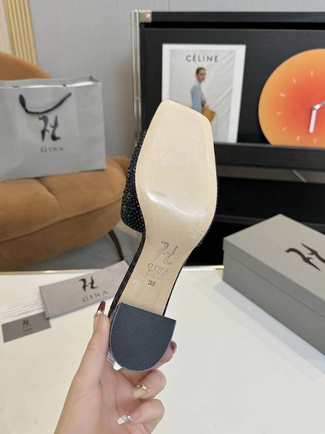 Factory Price pp Chunky Heel DDD Brand: Gina DDD 2025 New Hot Item Debut, Packaging, Pattern, Workmanship, and Materials are 1:1 Developed with the Original. DDD The Highest Version on the Market, Purely Handmade Diamond Slippers DDD The Ultimate Classic, Genuine Handmade Diamonds DDD Even the Number of Stitches is the Same as the Original, Master-Level Pure Handmade Craftsmanship! Comfortable to Wear and Not Tiring, the Upper Material Has a Self-Iridescent Effect, Showcasing Extraordinary True Colors. DDD High-End Customization, Exclusive Product, Highest Version in the Industry DDD Upper: Imported Pure Color Diamond Upper Color Matching Diamonds + Genuine Leather Welt Outsole DDD Packaging: Note the Top-Tier Exclusive Box, Original Quality Developed DDD Gina DDD Size: 35-40 35.41.42 Custom Made, No Returns or Exchanges DDD Height: 6.5Cm DDD