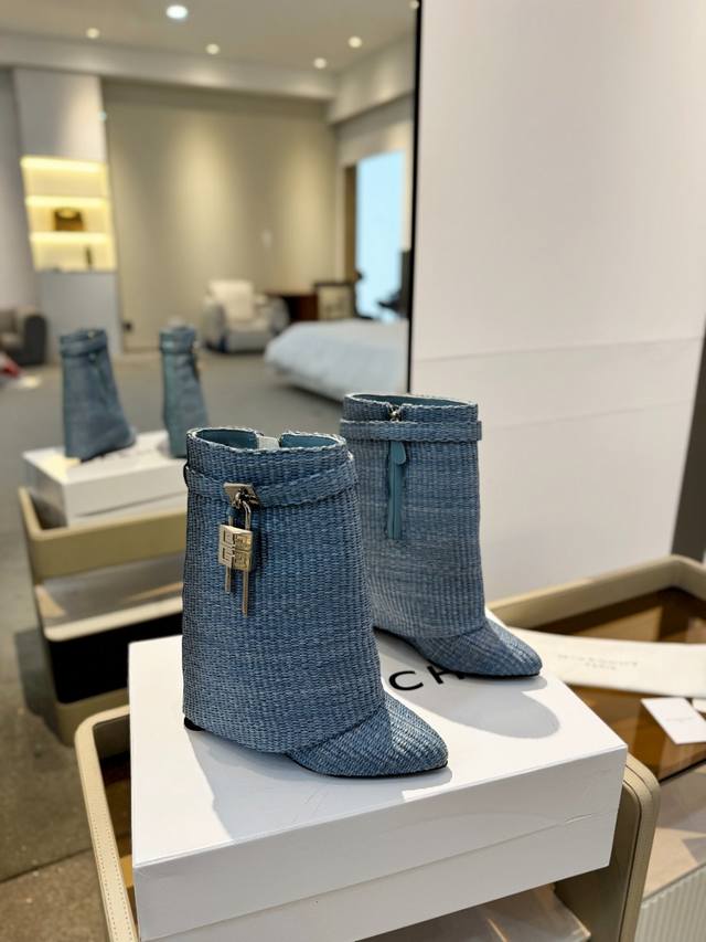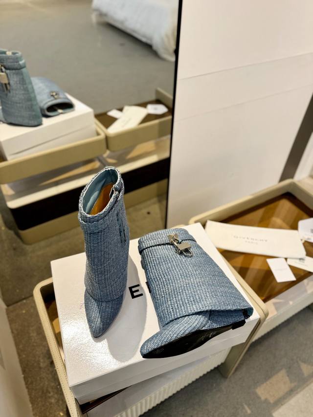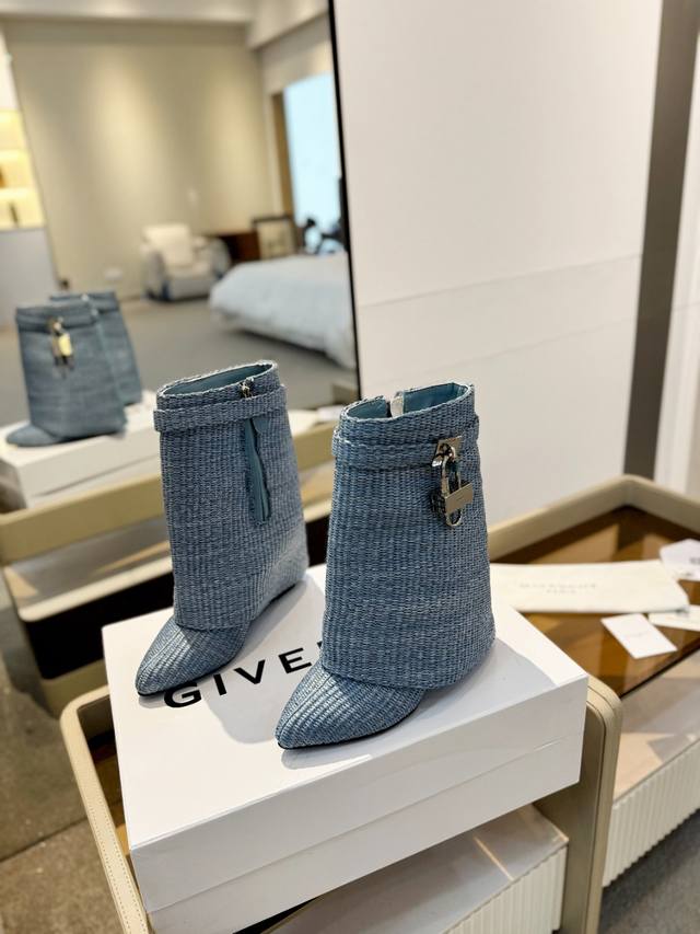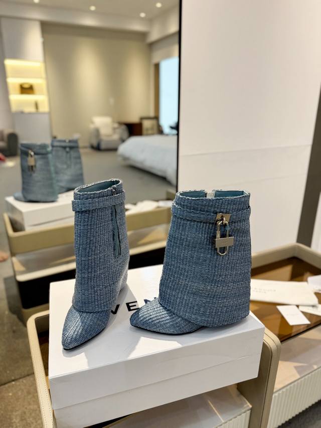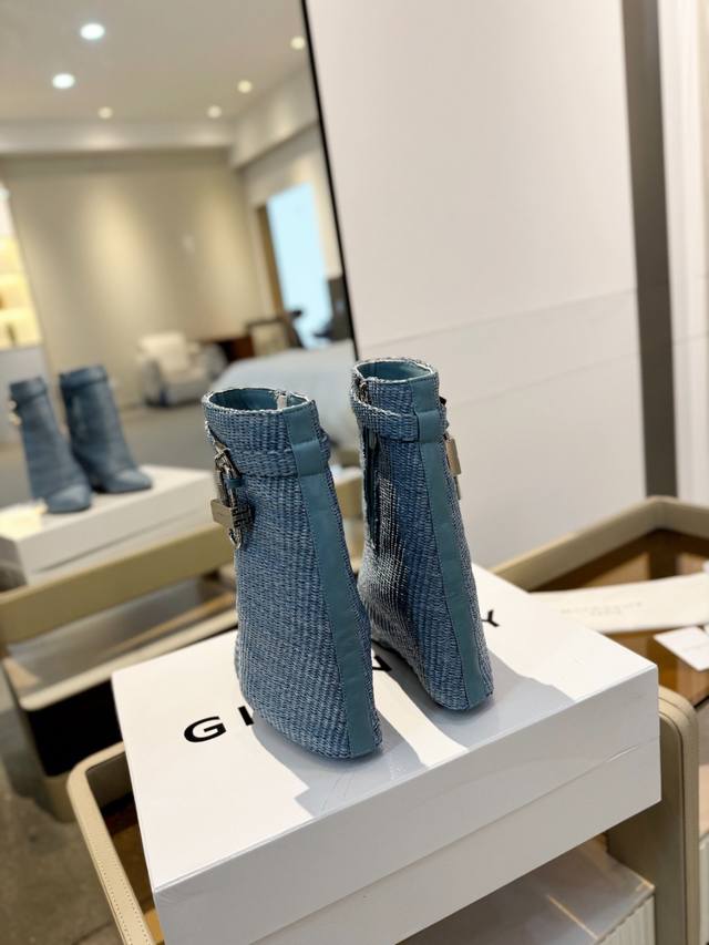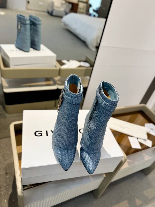 Price: Authentic Givenchy high-heeled ankle boots, top-quality custom version. Givenchy's iconic logo buckle is a fashion sensation. Original design, super accurate and highly realistic. Excellent fit, slimming, and luxurious. Super comfortable. Upper: Woven. Lining: Calfskin. Custom-made with the signature logo buckle. Heel: 8.5cm. Outsole: Imported genuine leather. Sizes: 35-40. Customizable, non-refundable.