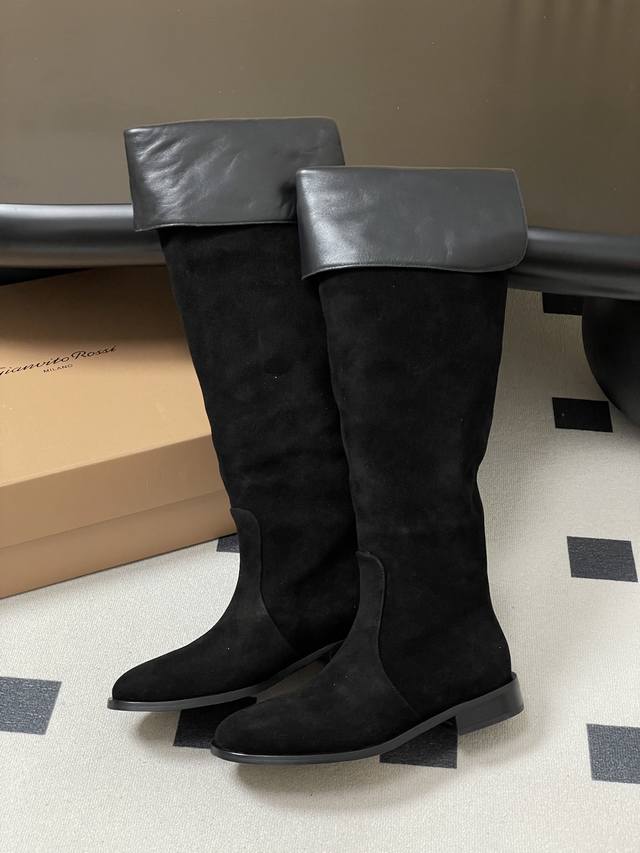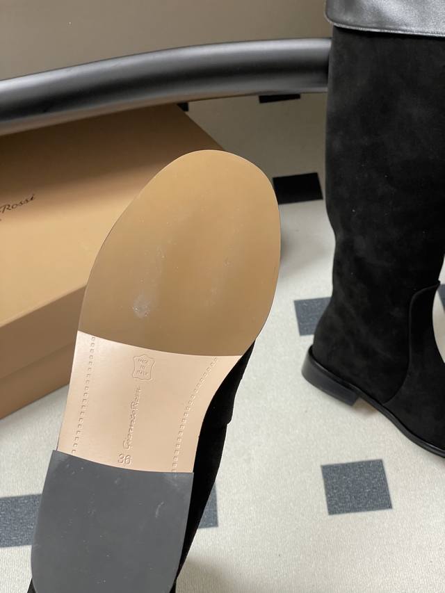 Top Quality DDD Gianvito Rossi 25S Autumn/Winter New Style Rossi Gr Retro Suede Slouch Over-the-Knee Boots Old Money Style Turn-Up Boots DDD Made of suede material, the texture is delicate, presenting a high-end matte effect, and the different colors of suede are extremely textured both visually and tactilely. High-heeled boots with a high shaft, which can effectively modify the leg lines; the heel is a block heel design, which combines stability and fashion sense, enhancing the aura while ensuring walking comfort. DDD The toe is designed with a square toe, which is simple and elegant, in line with the current fashion trend, and can also accommodate different foot shapes; the overall design is simple and clean, without too many complicated decorations, highlighting a classic and elegant style, easy to match with various clothing, whether it is a skirt or trousers, it can show a good sense of fashion. DDD Upper: Cow suede DDD Insole: Sheepskin DDD Outsole: Italian genuine leather outsole with injection molding forefoot DDD Heel height: 3cm DDD Sizes: 35-39 40 Made-to-order, no returns or exchanges DDD