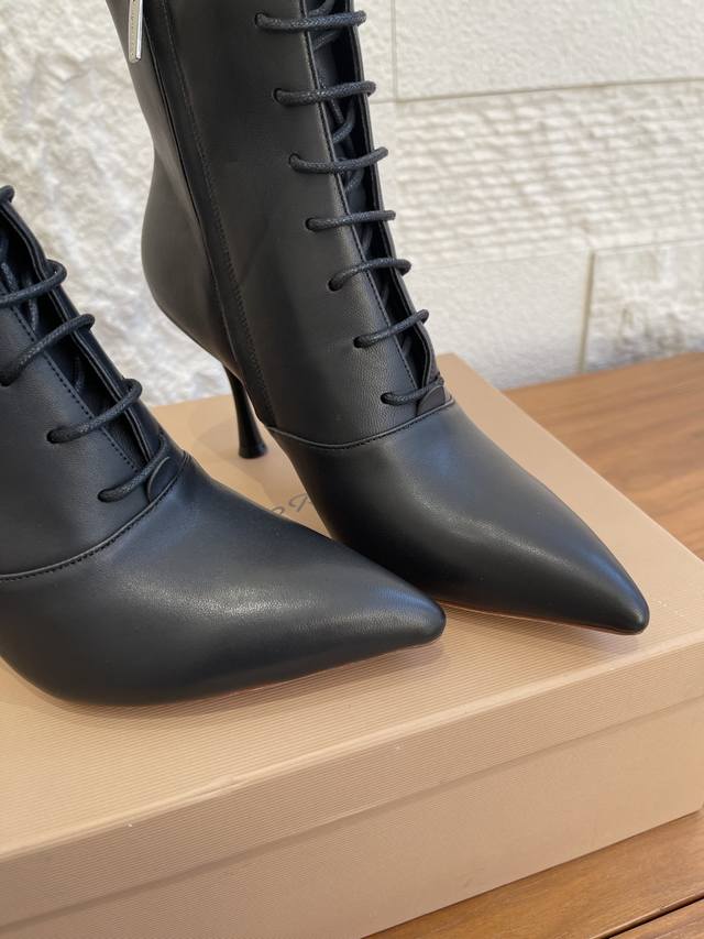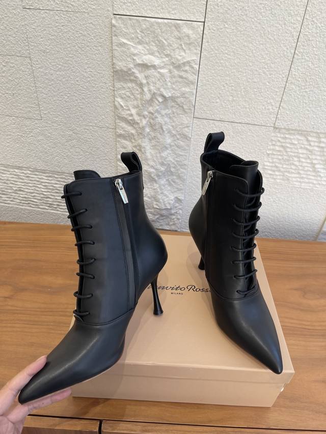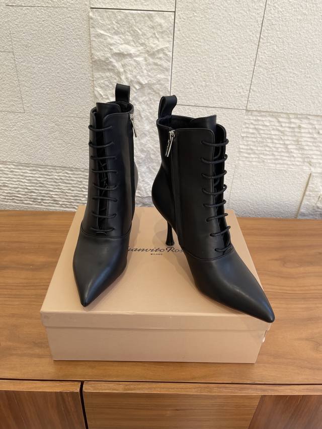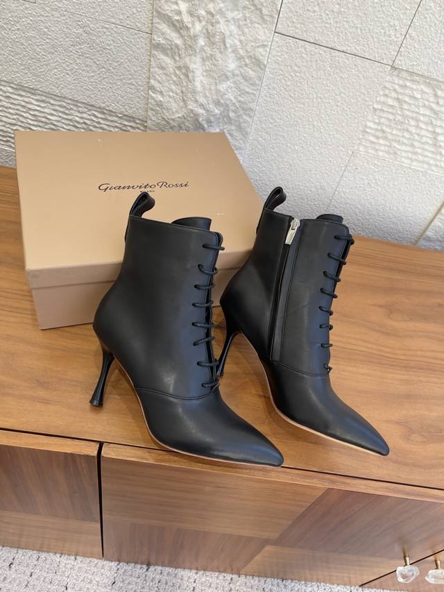 Top Version: DDD Gianvito Rossi 25Ss Autumn/Winter New Pointed Toe Lace-up Stiletto Heel Ankle Boots DDD Gianvito Rossi's classic pointed toe design elongates the visual lines, subtly lengthening the leg proportions while modifying the foot shape, making the feet appear more slender and long; the just-right mid-heel height makes them easy to wear for commuting, dates, and other occasions. The calm and sophisticated brown color is suitable for the crisp and capable look of autumn and winter coats and suit pants, and can also add a touch of mature charm to dresses and skirts. Whether paired with straight-leg jeans for an urban casual style or with a satin long skirt for French romance, these ankle boots can become the "finishing touch" of the look, easily enhancing the overall sophistication. DDD Material: Imported calfskin, imported suede DDD Lining: Imported cowhide DDD Outsole: Italian imported genuine leather outsole DDD Size: 35-42 40 41 42 Custom orders are non-refundable DDD