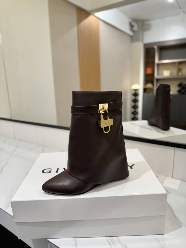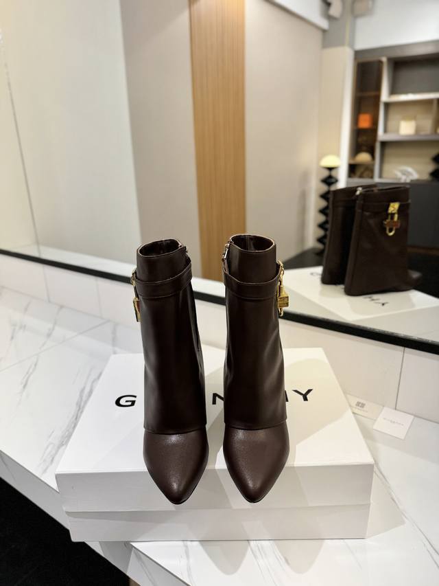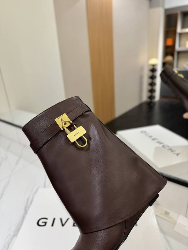 Authentic Counter-Grade Custom Version DDD Givenchy Shark Lock Series Padlock Ankle Boots, New Arrival, Highest Quality Version on the Market DDD Givenchy's iconic padlock buckle is a fashion sensation, instantly giving you longer legs DDD Original design, super accurate and highly replicated DDD Excellent fit, slimming and sophisticated look, super comfortable DDD Upper: Imported cowhide DDD Lining: Calfskin DDD Custom-made matching mold with iconic logo buckle DDD Buckle available in pure silver, pure gold, and gold and silver mix; please specify your preference when ordering DDD Heel: Matching mold, 8.5cm heel height DDD Outsole: Imported genuine leather outsole DDD Sizes: 35-40 34.40 41:42 Customizable, non-refundable DDD