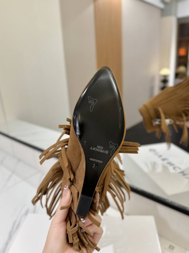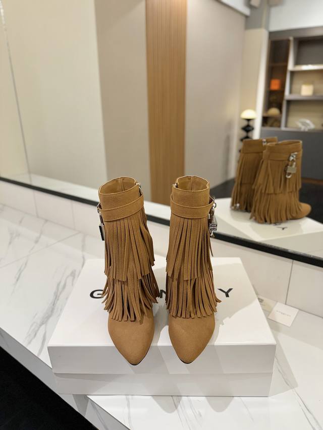 Authentic Counter-Grade Custom Version DDD Givenchy Shark Lock Series Padlock Ankle Boots with Tassel - New Style, Highest Quality Version on the Market DDD Givenchy's iconic lock buckle is a fashion sensation, instantly giving you longer legs DDD Original design, super accurate and highly replicated DDD Excellent fit, slimming and sophisticated look, super comfortable DDD Upper: Imported suede DDD Lining: Calfskin DDD Custom-made matching mold with iconic logo lock DDD Lock available in pure silver, pure gold, and gold and silver mix; please specify your preference when ordering DDD Heel: Matching mold, 8.5cm heel height DDD Outsole: Imported genuine leather outsole DDD Sizes: 35-40 34.40 41:42 Customizable, non-refundable DDD