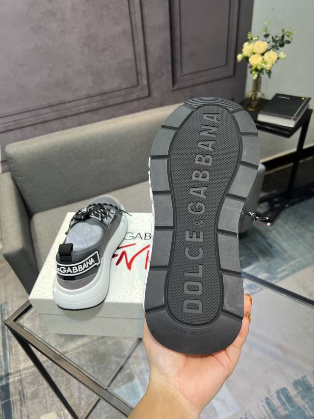 Dolce & Gabbana (D&G) latest style flyknit casual sneakers, original purchase and re-production. DG's latest hot-selling casual shoes, featuring the brand's signature details on the tongue, stylish and versatile, adding a touch of flair to any look. A sophisticated design with a dynamic and modern feel, showcasing contemporary elegance. Comes with exquisite boutique packaging. Material: Original custom flyknit fabric; Lining: Original custom breathable lining; Size: Men's 38-44, 45, 46 (custom made).