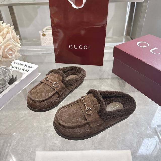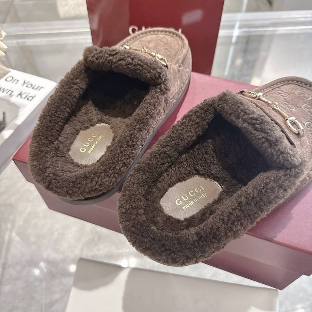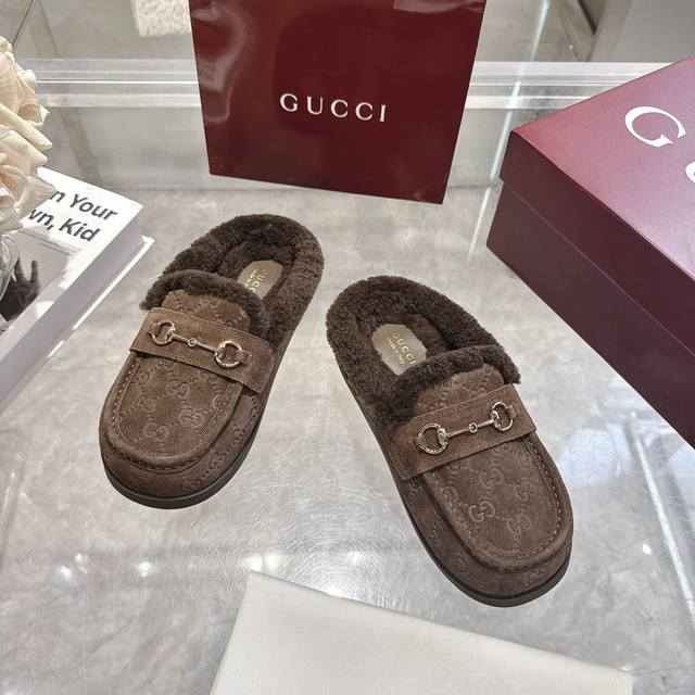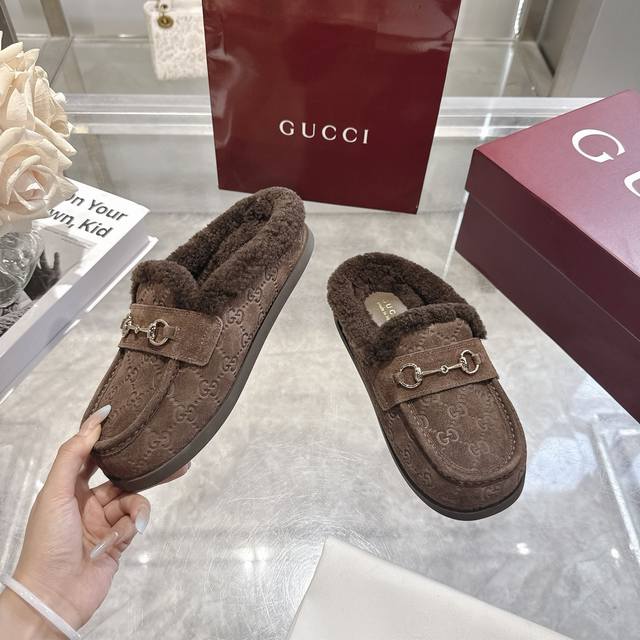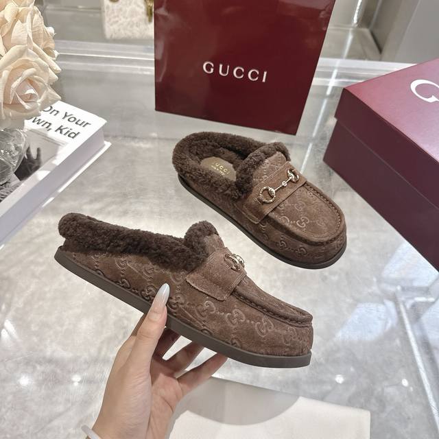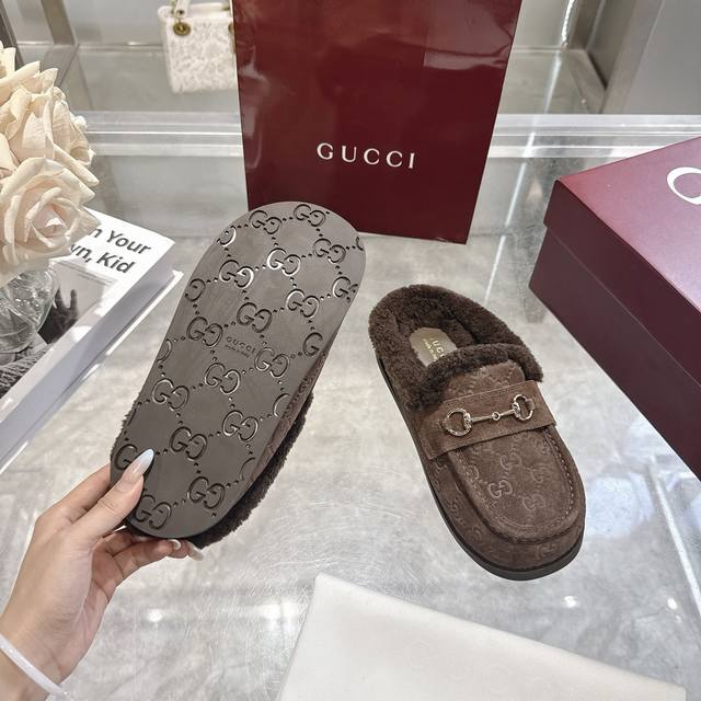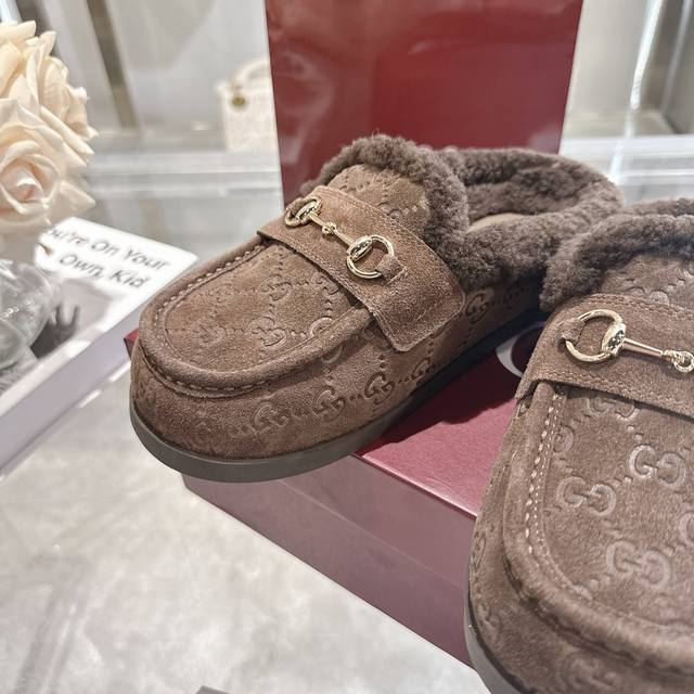 Factory direct price women's shoes sports original single autumn and winter new suede cowhide horsebit women's wool slippers DDD Gg continues to use archival symbols in the winter collection. Horsebit hardware, reminiscent of the brand's equestrian heritage, appears on these Camel and cowhide high-frequency embossed Gg mules. DDD Cowhide suede Gg embossed Ddd Horsebit decoration Ddd Gold hardware Ddd Wool lining Ddd Round toe Ddd Rubber sole Ddd Flat Ddd Made in Italy Ddd Sizes: 36
