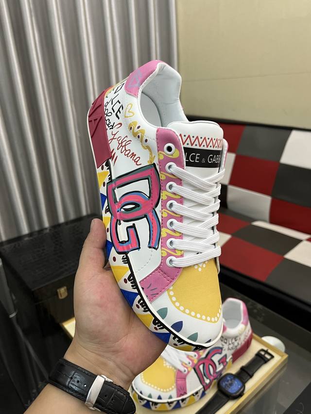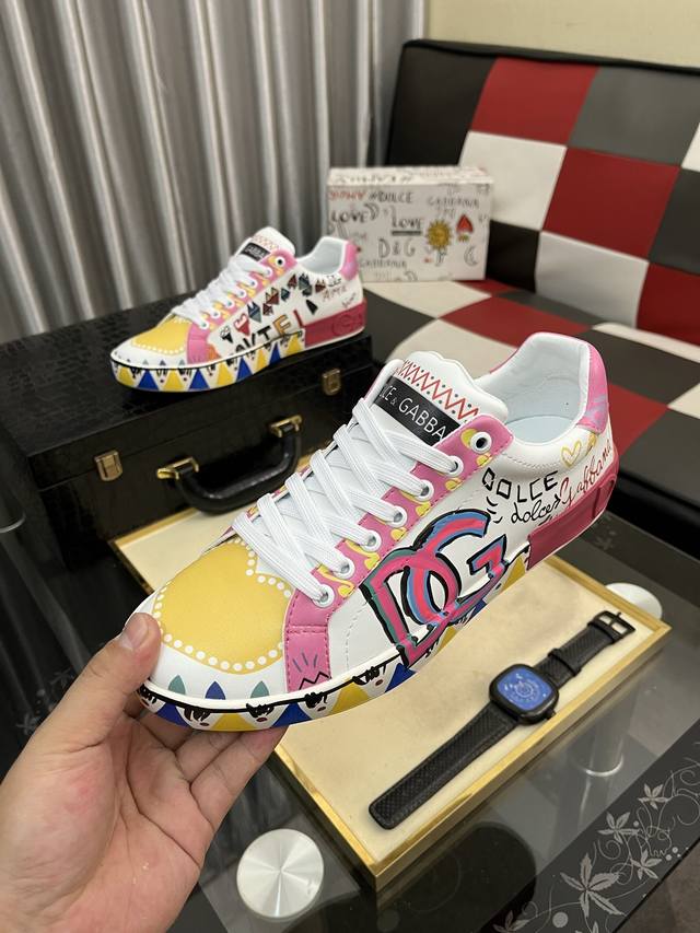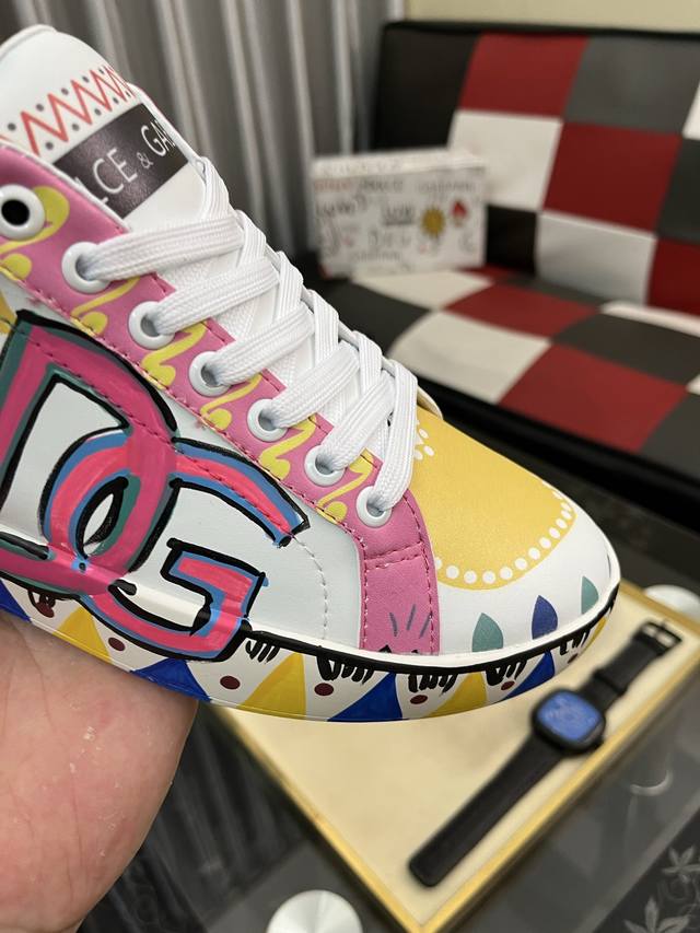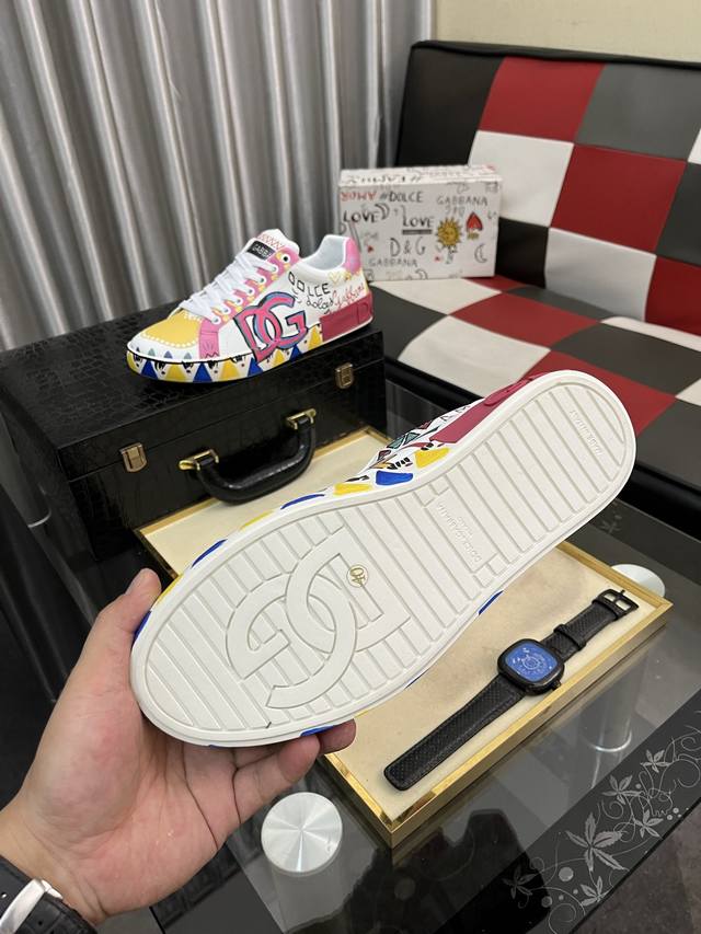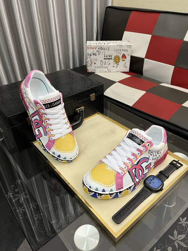 Factory Price (pp): New Dolce & Gabbana high-end couple's sports and casual shoes, featuring imported cowhide leather, multi-material splicing design, imported cowhide leather lining, cowhide insole, original TPR elastic outsole. Size: 35-46