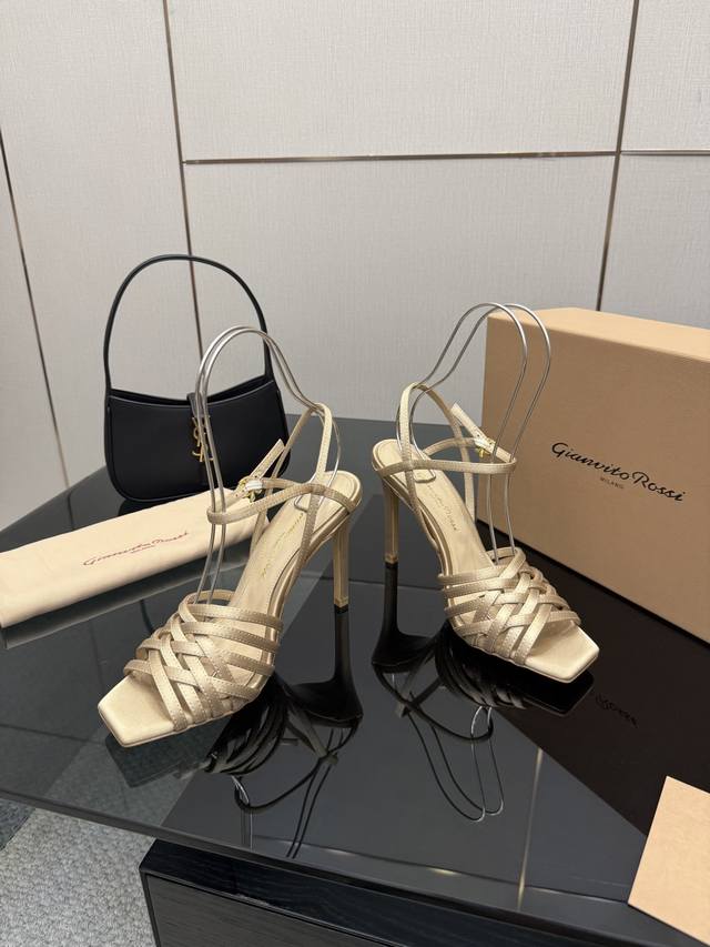 Gianvito Rossi 2025 New Sandals DDD Original Development Top-Tier Version DDD Authentic Quality DDD These Gianvito Rossi strappy high-heeled sandals are simply a treasure in the fashion world! The delicate straps intertwine, like a dreamy weave around the ankle, exuding sophistication within a casual style. Slip on the heel, and your aura instantly explodes, effortlessly creating the illusion of long legs. Wearing them, whether strolling the streets or attending a party, you can perfectly switch between comfort and style. DDD The heel is 10cm high, and the design features three different colored straps, paired with the brand's classic iconic logo