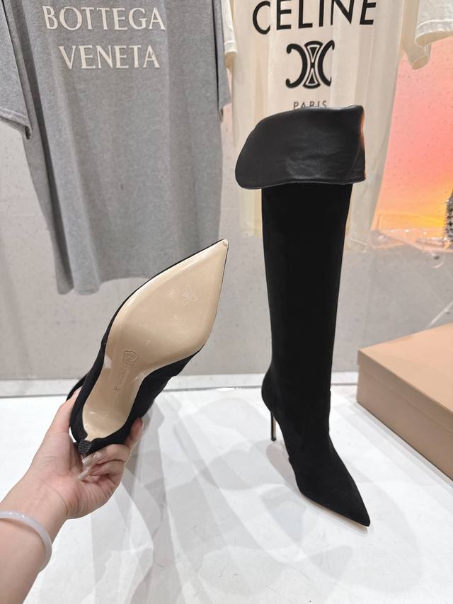 High-quality factory version DDD Gianvito Rossi F025 2025Ss new sexy high-heeled over-the-knee boots folding boots DDD Gianvito Rossi upholds its traditional Italian craftsmanship, focusing on exquisite details to create elegant femininity. The folds at the foot flatter the ankle line, and the just-right shaft height makes the legs look longer. A classic and versatile pair of boots that can match any wardrobe. Very noble and elegant to wear DDD Material: High-gloss suede sheepskin DDD Insole: Imported sheepskin DDD Heel height: 9.5Cm DDD Outsole: Italian imported genuine leather outsole DDD Sizes: 35-40 Size 40 is custom-made and non-refundable DDD