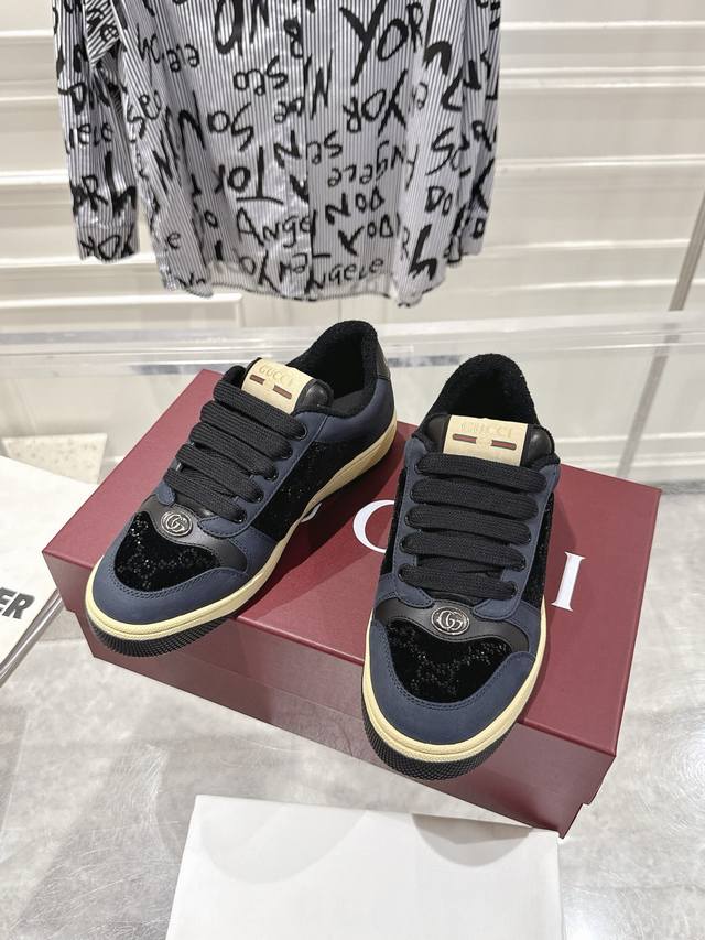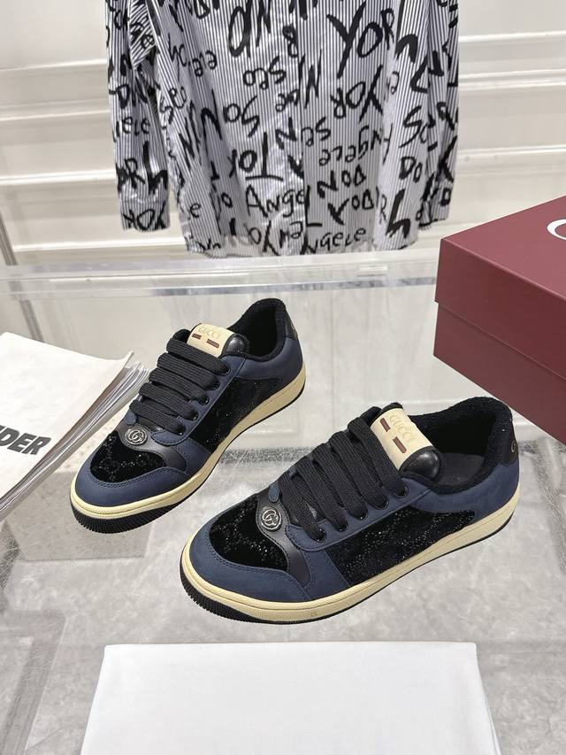 Diamond Style Factory Direct - Latest Upgraded GUCCI* GG Screener Series Sporty Sneakers. Original last construction and original TPU outsole. Original edge finishing throughout. Women's sizes 35-41. Original green box packaging with a free pair of shoelaces.