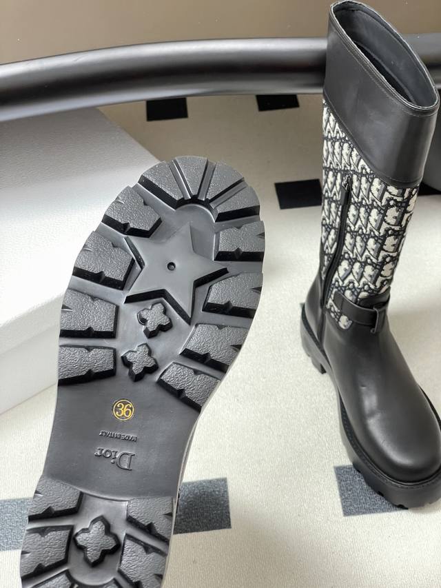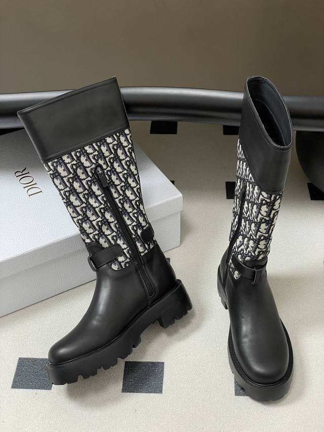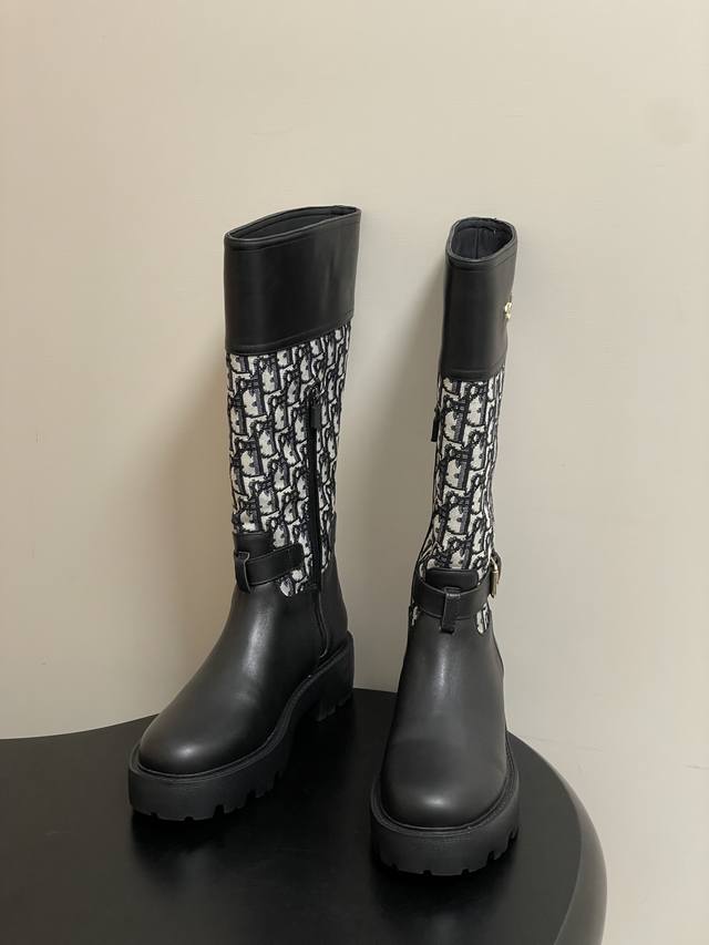 2025 Autumn/Winter New Dior D-Town Boots Black Calfskin and Nylon with Cannage Pattern Embroidery Mid-Calf Riding Boots Classic Cd Logo Buckle Fabric Slip-on Straight Boots DDD This D-Town boot is striking and stylish. The upper is made of black calfskin and nylon, with the nylon featuring cannage stitching. The sides are adorned with a gold-plated Christian Dior Paris logo and adjustable laces with buckles to elevate the look and accentuate the ankle. A thick, lightweight notched sole adds a fashionable touch to any outfit. DDD Upper: Original calfskin, custom-made imported technical embroidered fabric DDD Insole: Mixed sheepskin DDD Sole: Original mold TPU rubber outsole DDD Sizes: 35-39 40, 41, 42 Custom-made, no returns or exchanges DDD