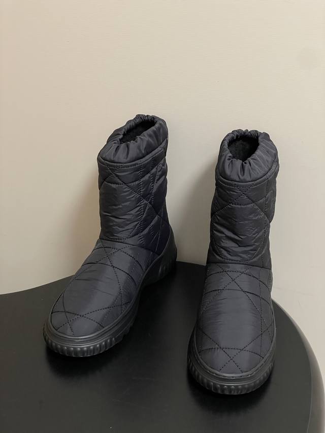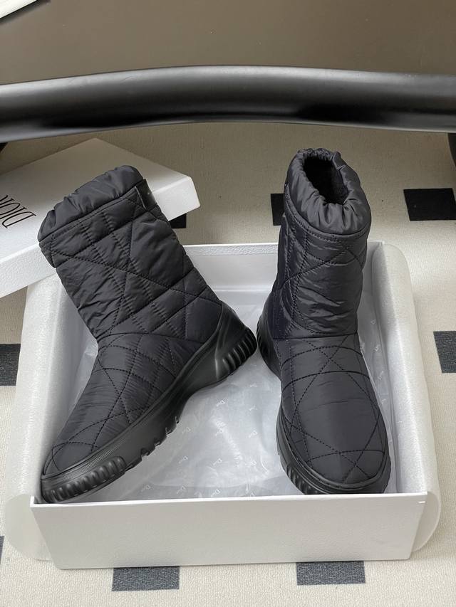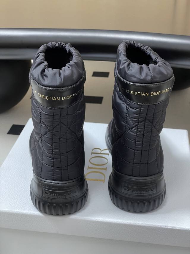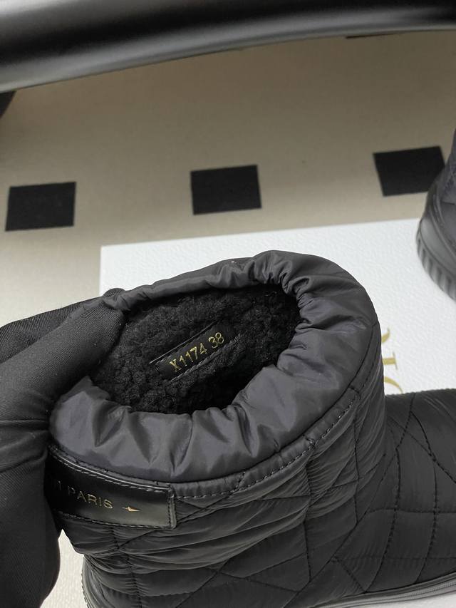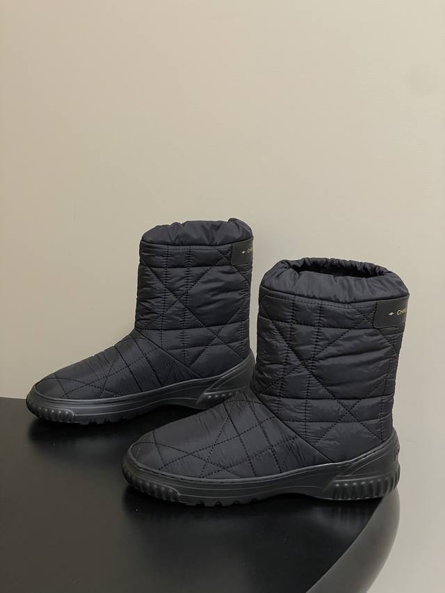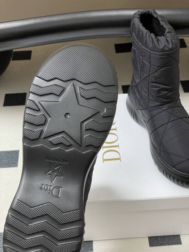 2025 Fall/Winter New Dior Alps Dior Frost Ankle Boots Cd Letter Wool Snow Boots Thick-Soled Casual Warm Short Boots DDD This Dior Frost ankle boot is from the Dior Alps limited collection, incorporating haute couture style and reinterpreting the snow boot style. The washed blue and off-white quilted nylon Oblique print upper complements the white sheepskin leather, and the elastic design creates an ideal fit. The heel is adorned with a tonal leather panel and accented with a gold-tone Christian Dior Paris logo DDD. The lightweight rubber sole is decorated with the logo for added sophistication. It can be paired with other Dioralps items to create a coordinated look. DDD Upper: Custom technical fabric DDD Insole: Wool DDD Sole: Original molded rubber outsole DDD Sizes: 35-39 40.41 Custom-made, no returns or exchanges DDD