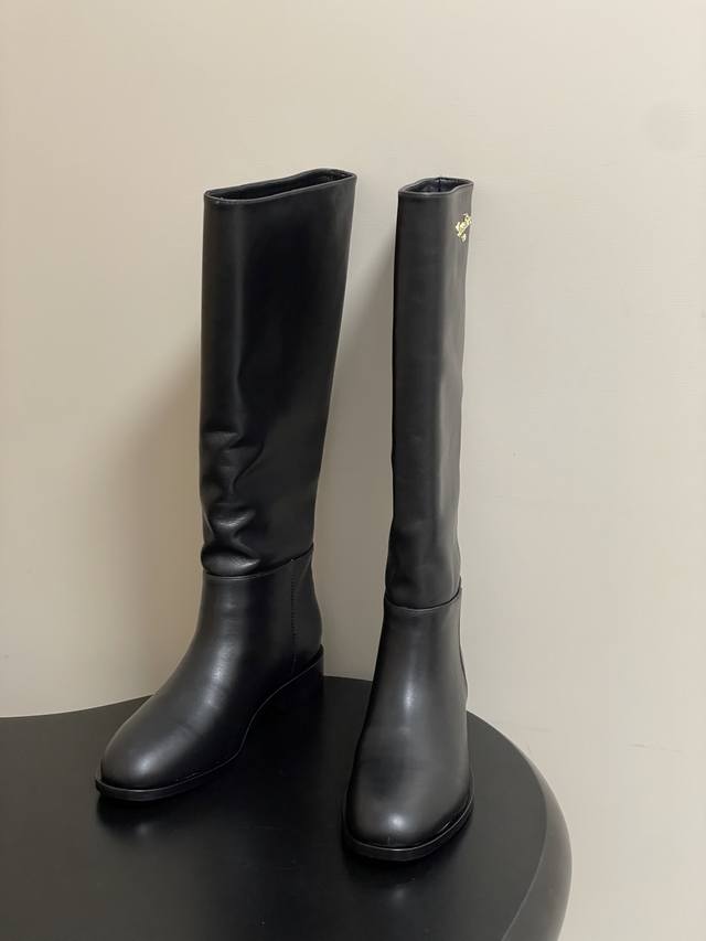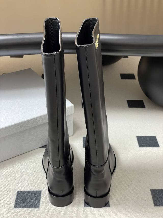 2025 Fall/Winter New Dior D-Town Riding Boots, Classic Cd Metal Logo Buckle Slip-on Straight-leg Boots. These D-Town boots present a classic look with a modern twist. The straight silhouette is crafted from supple black calfskin, and the sides are adorned with a gold-plated Christian Dior Paris logo for added sophistication. A refined style that elevates any look this season. Upper: Calfskin/Suede; Lining/Insole: Sheepskin; Sole: Italian Leather Outsole; Sizes: 35-39; 40, 41, 42 (Made to order, no returns or exchanges).