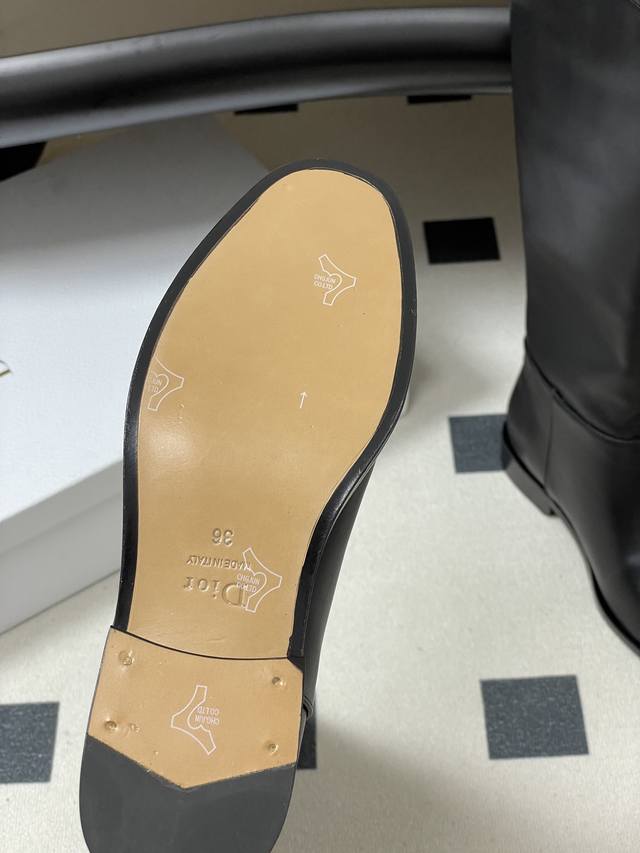 2025 Fall/Winter New Dior D-Town Riding Boots, Classic Cd Metal Logo Buckle Slip