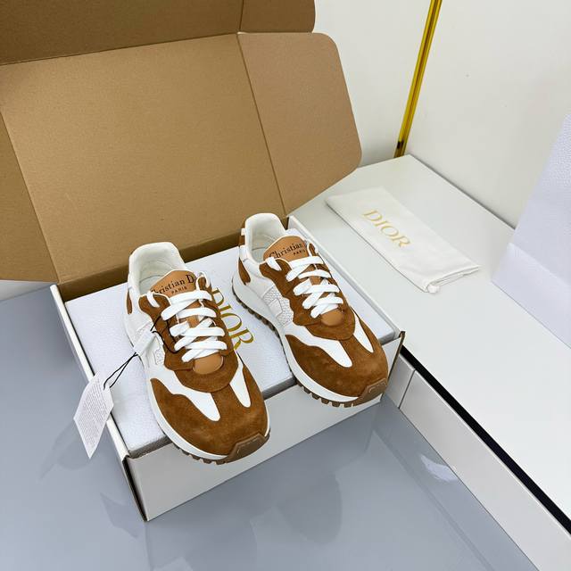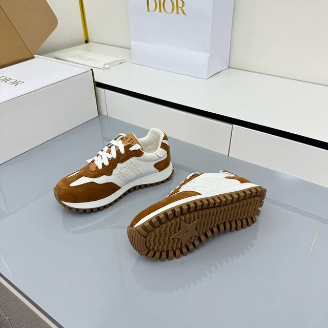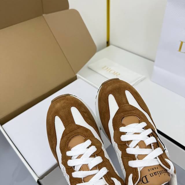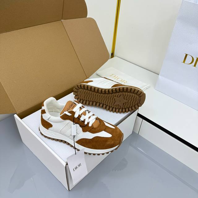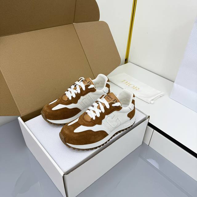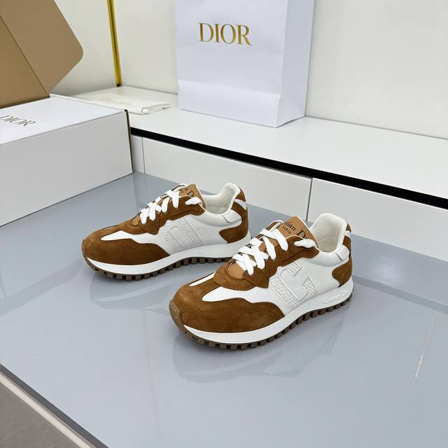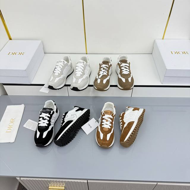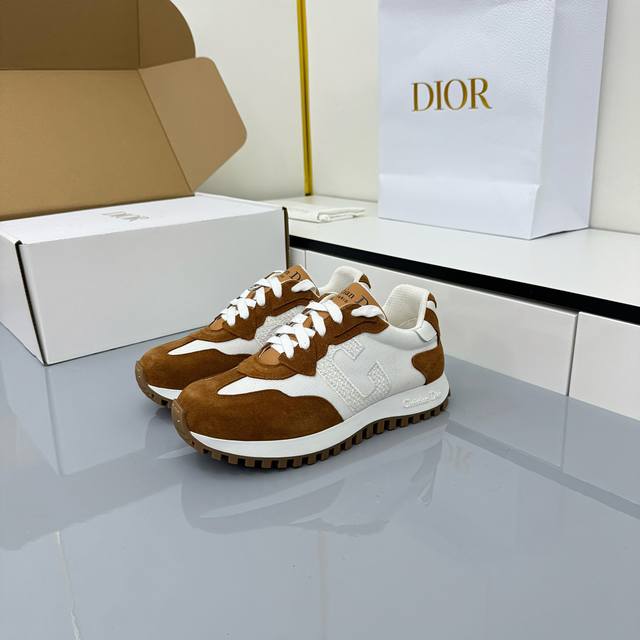 2025 New C'est Dior Sneakers, featuring a C on the left and a D on the right to form Dior's Cd logo. Understated luxury, lightweight and comfortable, with a thick sole for added height. White mesh knit fabric paired with imported cowhide and imported suede leather, TPU outsole. Sizes 35-41 available in four colors.