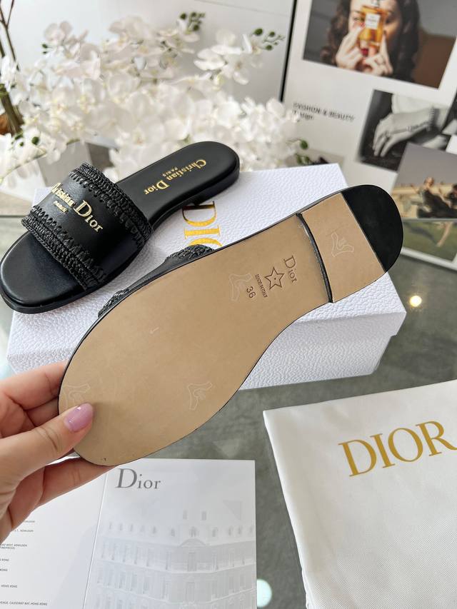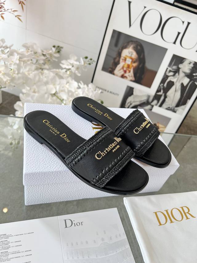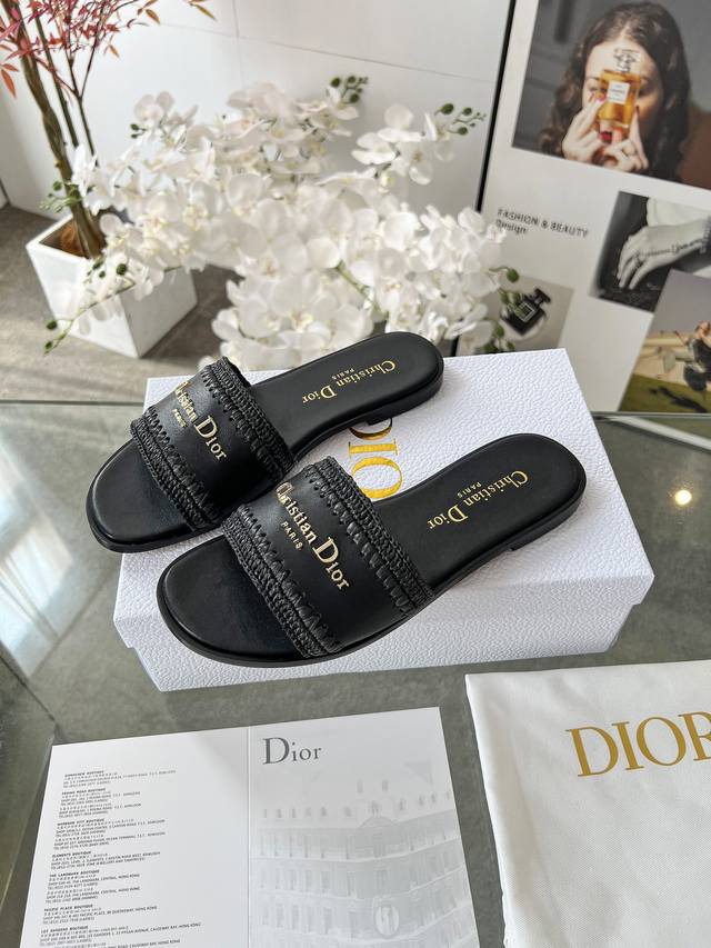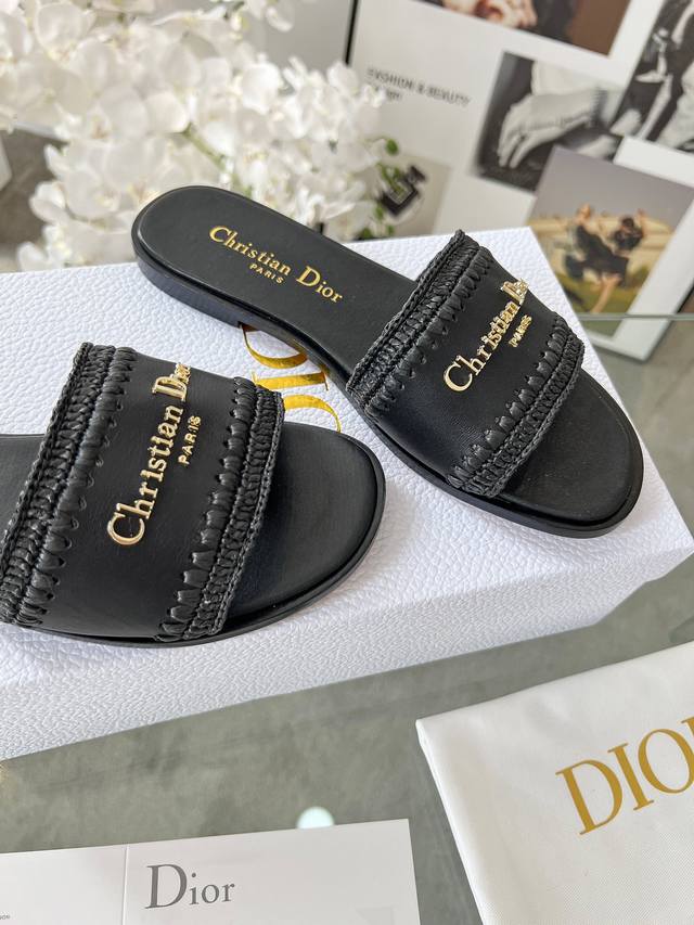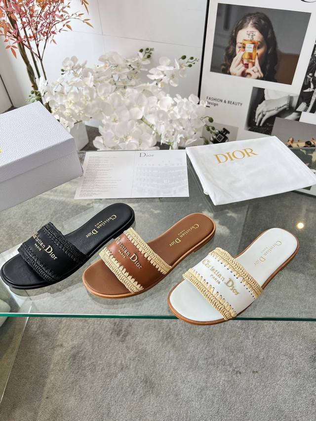 A new classic from Dior. These hand-woven raffia fingerless sandals are a retro, stylish, and avant-garde pair, making them lightweight, comfortable, and vibrantly colored for a versatile style. The iconic metal buckle complements the vintage beach sandal design, ensuring every element is stylish! Upper: Custom-made raffia + cowhide leather Lining: Sheepskin Outsole: Genuine Italian leather Sizes: 35-42 40, 41, and 42 made to order. Factory price: p