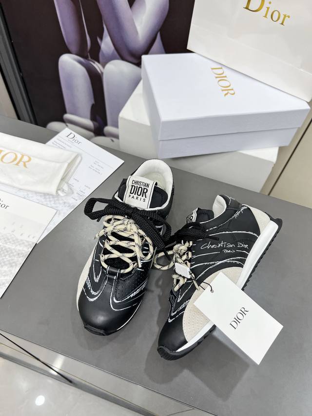 New to the Spring/Summer 2025 ready-to-wear collection, these D-Sketch sneakers embody a classic vintage aesthetic. Crafted from gold-tone crinkled lambskin and gold-tone stacked calfskin, they feature beige suede panels and double laces. The handwritten Christian Dior Paris signature adorns the side, while the heel and tongue feature Christian Dior Paris panels and plaques. A two-tone slim rubber sole adds a refined touch.