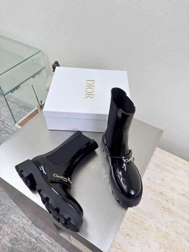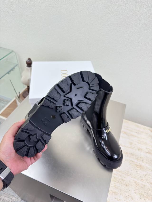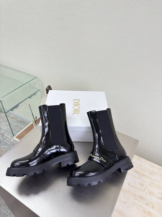 Chelsea Elastic Boots Dior Thick-Soled Metal Letter Logo Decorated Ankle Boots DDD Original Version DDD Black Calfskin Patent Leather DDD High-Quality Calfskin DDD Shoe Shape Upgraded to the Ultimate, Super Comfortable DDD This Year's Must-Have Fashion Item D-Doll Series Classic Pearl Accessories Stylish and Versatile, Full of Girlish Charm DDD One-Piece Outsole DDD Original Outsole Printed with Brand Logo, Decorated with a Touch of Childlike Charm DDD German Training Outsole Original Version DDD Sizes Women's 35 36 37 38 39 40 41 DDD Women's 40 41 Custom Sizes DDD Comes with Original Packaging DDD