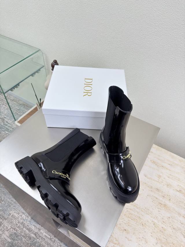 Chelsea Elastic Boots Dior Thick-Soled Metal Logo Ankle Boots
