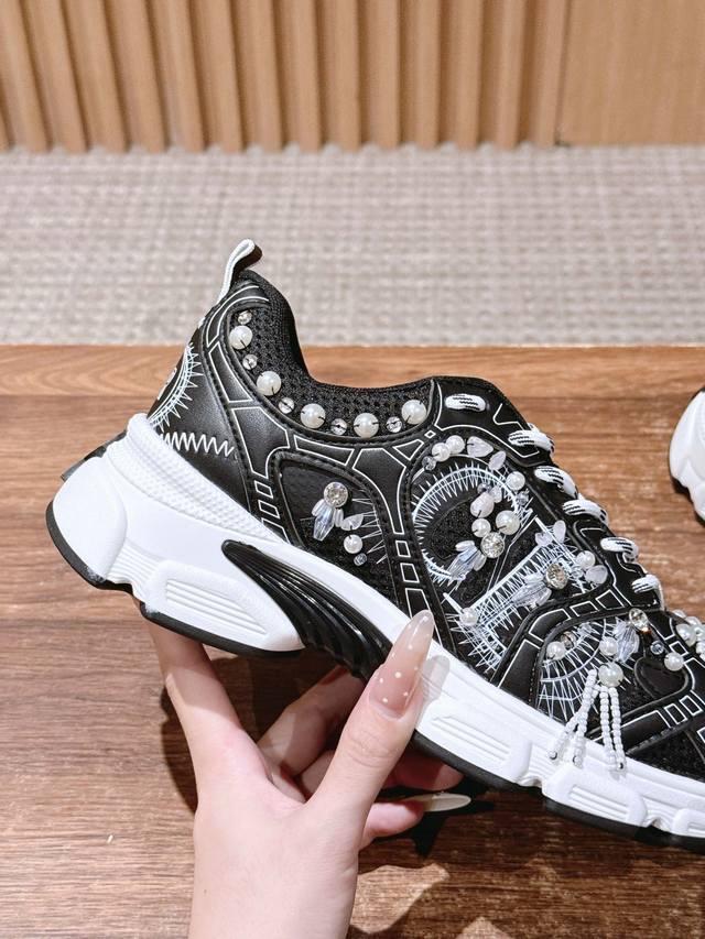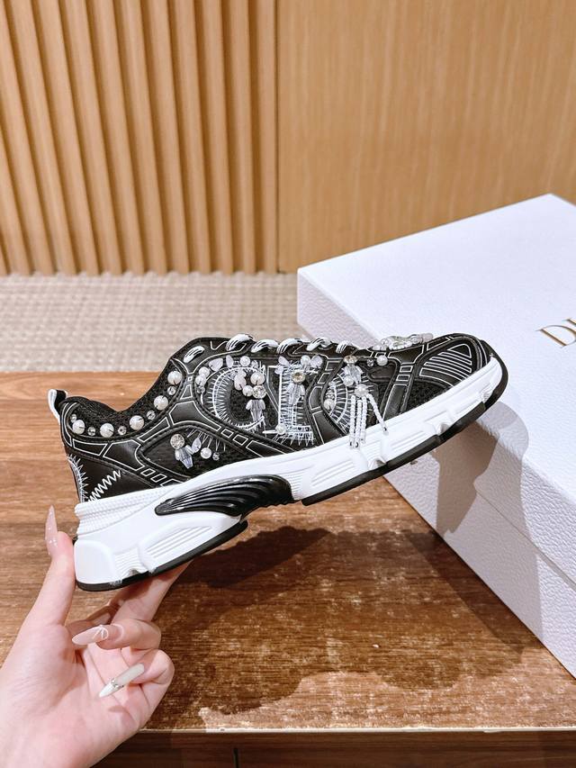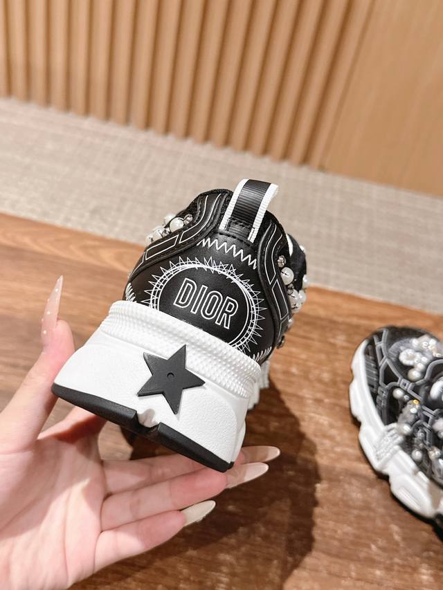 Custom Wool + 20 Dior New Sequined Dad Shoes DDD The shoe features a dad shoe silhouette, combining breathable mesh fabric with a thick rubber outsole. The collar is padded with wool, offering both a trendy look and winter warmth. DDD The shoe has a sharp, angular design and is available in multiple colors to suit both minimalist and individualistic styles. It blends the "trendy street style of dad shoes" with the "warmth of a plush lining," making it suitable for autumn and winter. It's versatile enough for casual occasions, and the thick sole design helps to optimize body proportions. DDD Upper: Cowhide DDD Lining: Sheepskin DDD Outsole: Original mold outsole DDD Height Increase: 6cm DDD Size: Women's sizes 35-41, size 40-41 (custom orders are non-refundable and non-exchangeable) DDD