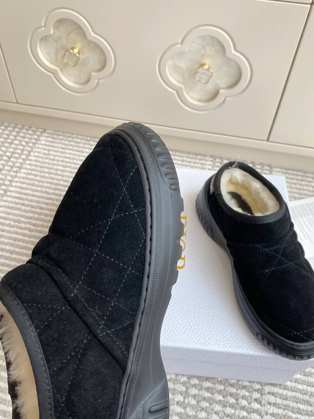 These Dior Frost ankle boots offer a fresh take on the ski look with couture flair. Featuring a cannage pattern and a tonal fur lining, the drawstring allows for an adjustable fit. The back of the boot is embellished with a gold "Christian Dior Paris" logo, and the thick Eva sole provides exceptional comfort.