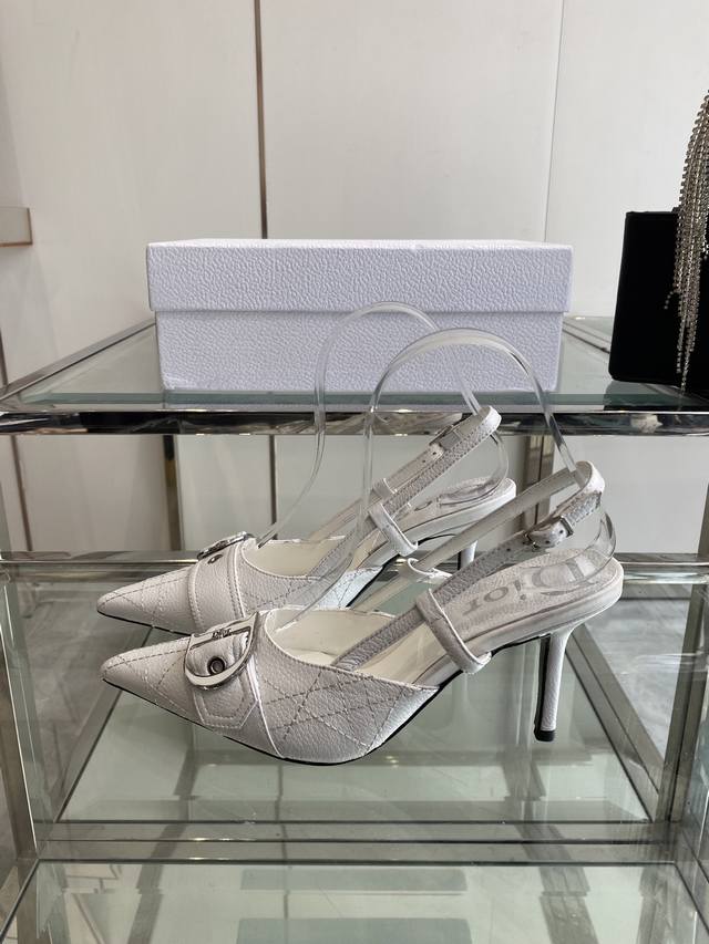 Dior 2025 Early Spring New Celebrity Style Cd Logo High-Heeled Sandals. Very comfortable, vintage style, embroidered toe pad, top-tier high-end version. Upper made of imported embossed mixed sheepskin, water-dyed sheepskin lining, Italian genuine leather insole, 8.5cm heel height. Sizes: 34-42 (34 40 41 42). Custom made.
