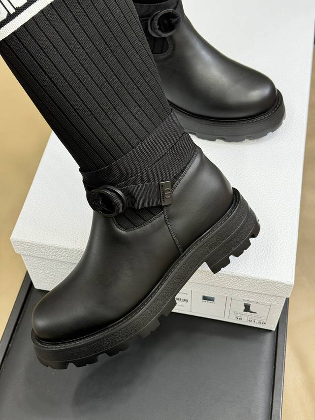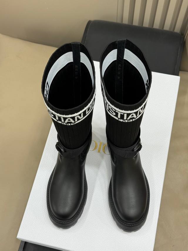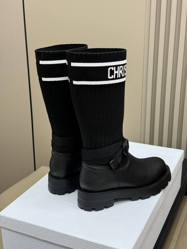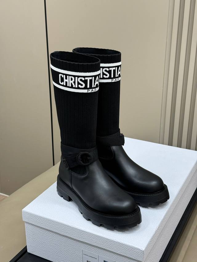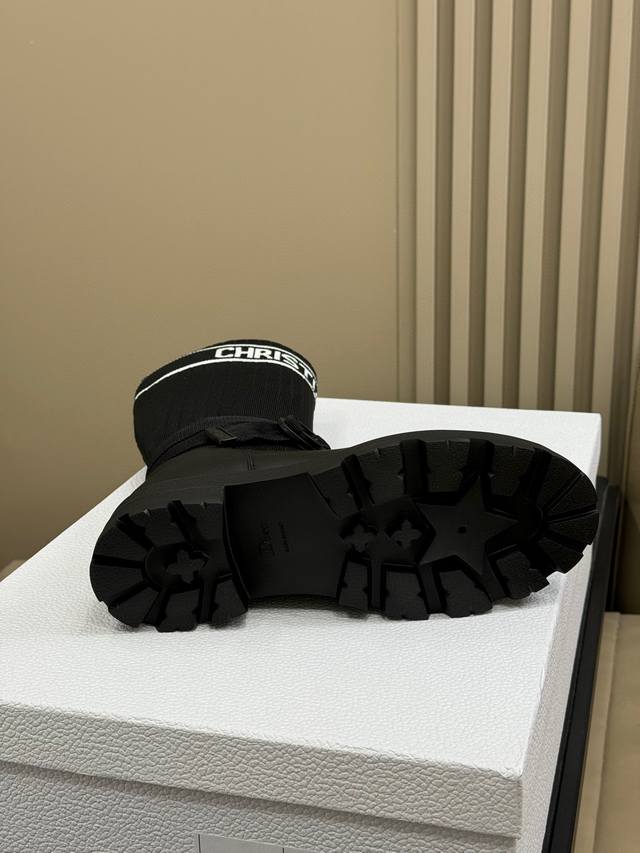 Dior 2025 Fall/Winter New Arrival: Cd Logo Embroidered Knit Boots. Cd sock-style ankle boots paired with platform shoes create a cool and relaxed look that's irresistible. The logo instantly elevates the style, perfect for street style looks with a coat or sweatshirt. High-top/Short-top. True to size: 35-39. Custom sizes: 40.41.