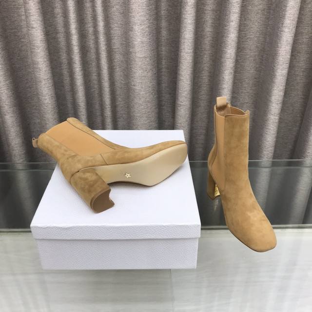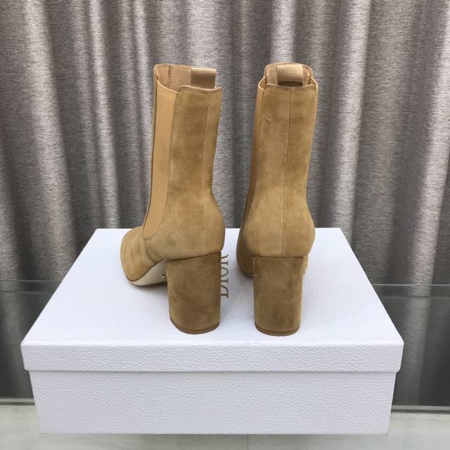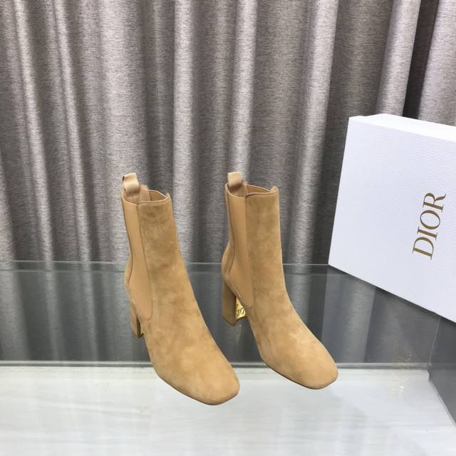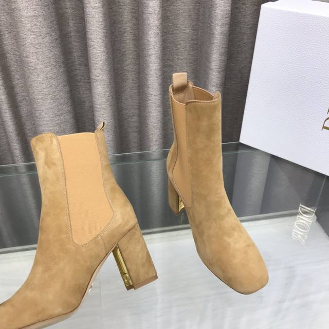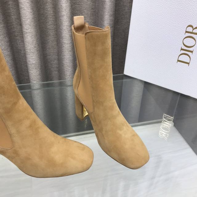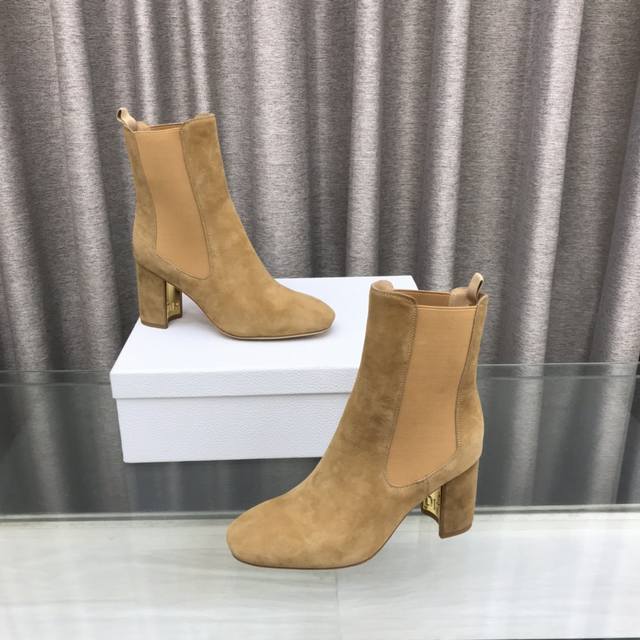 Dior 2025 Fall/Winter New D-Art Series Chunky Heel Chelsea Boots, Celebrity Style, Cd Logo Hardware Buckle Motorcycle and Ankle Boots, High Heel Round Toe Elastic Short Boots. Upper: Imported calfskin. Lining: Water-dyed cowhide lining and insole. Outsole: Italian genuine leather. Heel height: 8cm. Size: 34-43 (34, 40, 41, 42, 43 - Custom sizes, no returns or exchanges).