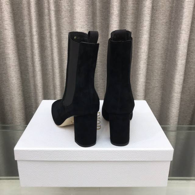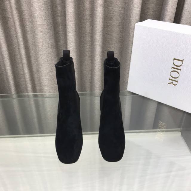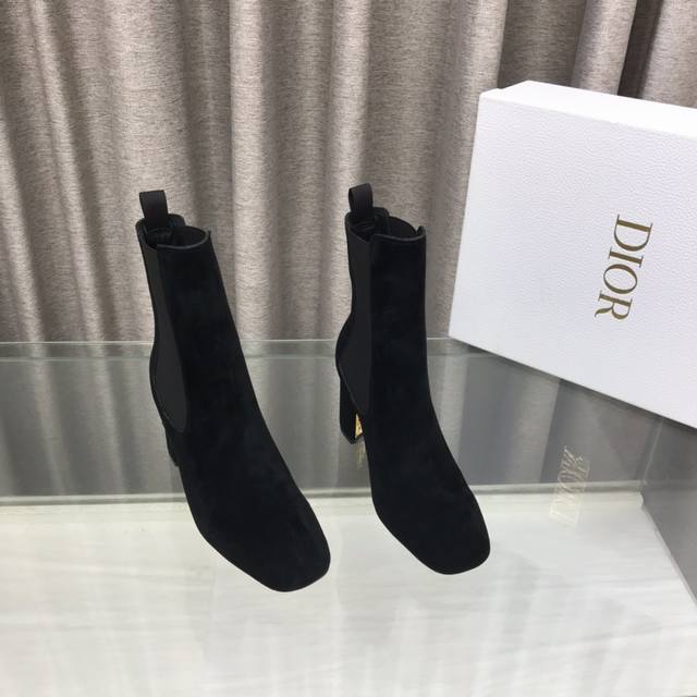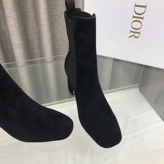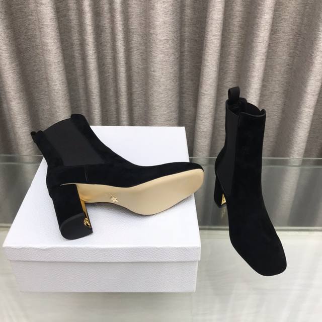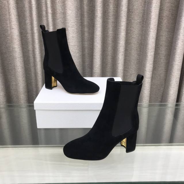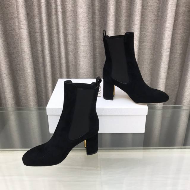 Dior 2025 Fall/Winter New D-Art Series Chunky Heel Chelsea Boots, Celebrity Style, Cd Logo Hardware Buckle Motorcycle and Ankle Boots, High Heel Round Toe Elastic Short Boots. Upper: Imported Calfskin. Lining: Water-dyed cowhide lining and insole. Outsole: Italian genuine leather. Heel Height: 8cm. Size: 34-43 (34, 40, 41, 42, 43 - Custom sizes, no returns or exchanges).