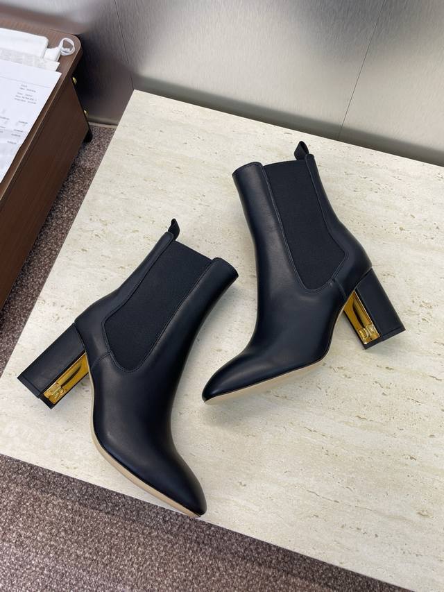 Celebrity Style Cd Logo Hardware Buckle Motorcycle and Ankle Boots High Heel Round Toe Elastic Short Boots