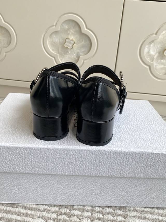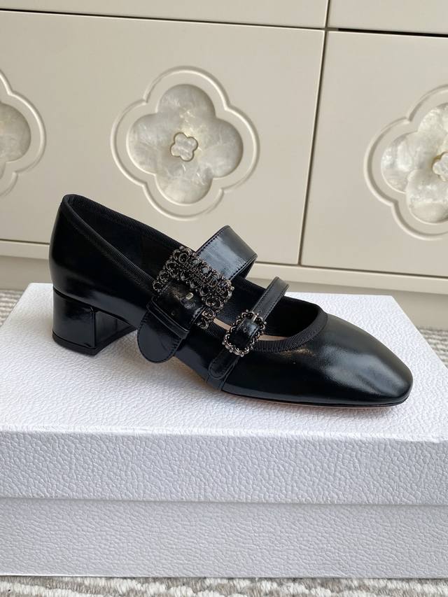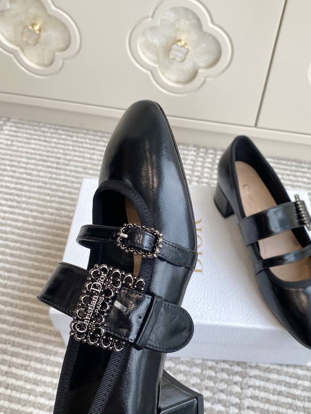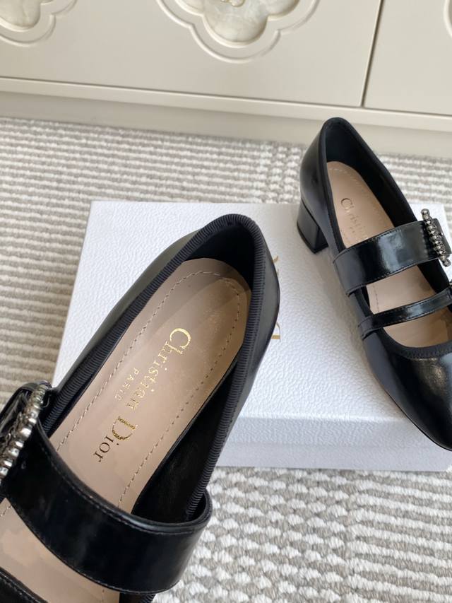Dior 2025 New D-New Ballet Chunky Heel Round Toe Mary Jane Shoes Material: Imported cowhide patent leather upper, water-dyed sheepskin lining + Italian genuine leather outsole + original molded hardware buckle Heel height: 3.5cm (flat sole) Size: 35-43 (Custom sizes available, no returns or exchanges)