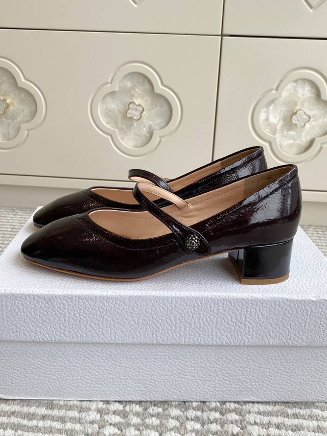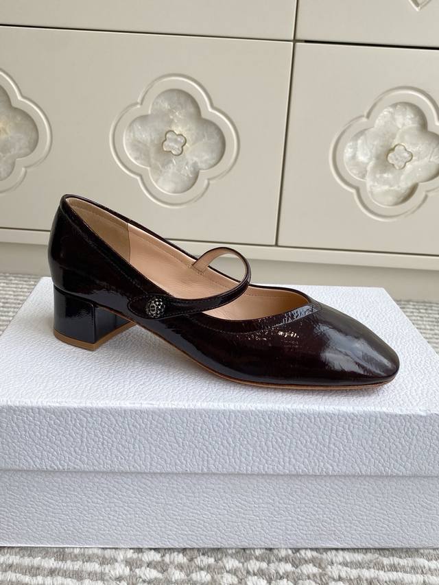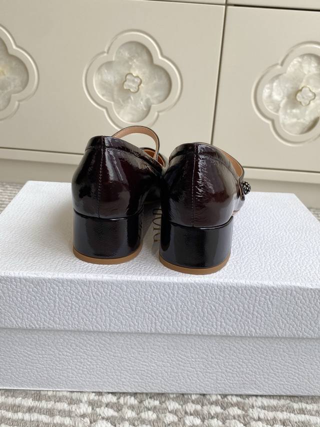 Dior 2025 New D-New Ballet Chunky Heel Round Toe Mary Jane Shoes Material: Imported cowhide patent leather upper, water-dyed sheepskin lining + Italian genuine leather outsole + original molded hardware buckle Heel height: 3.5cm Size: 35-43 40 41 42 43 Custom orders are non-refundable and non-exchangeable